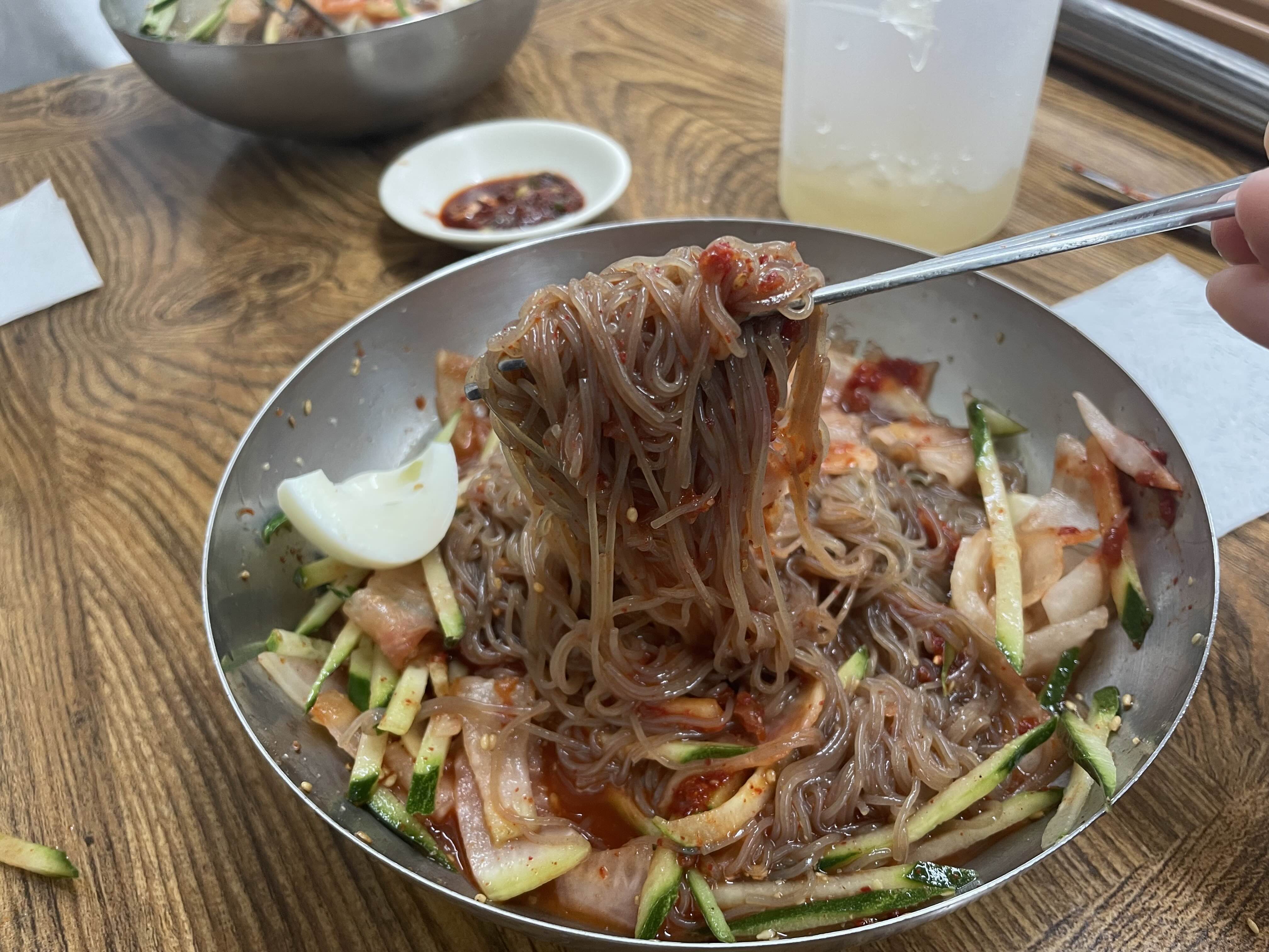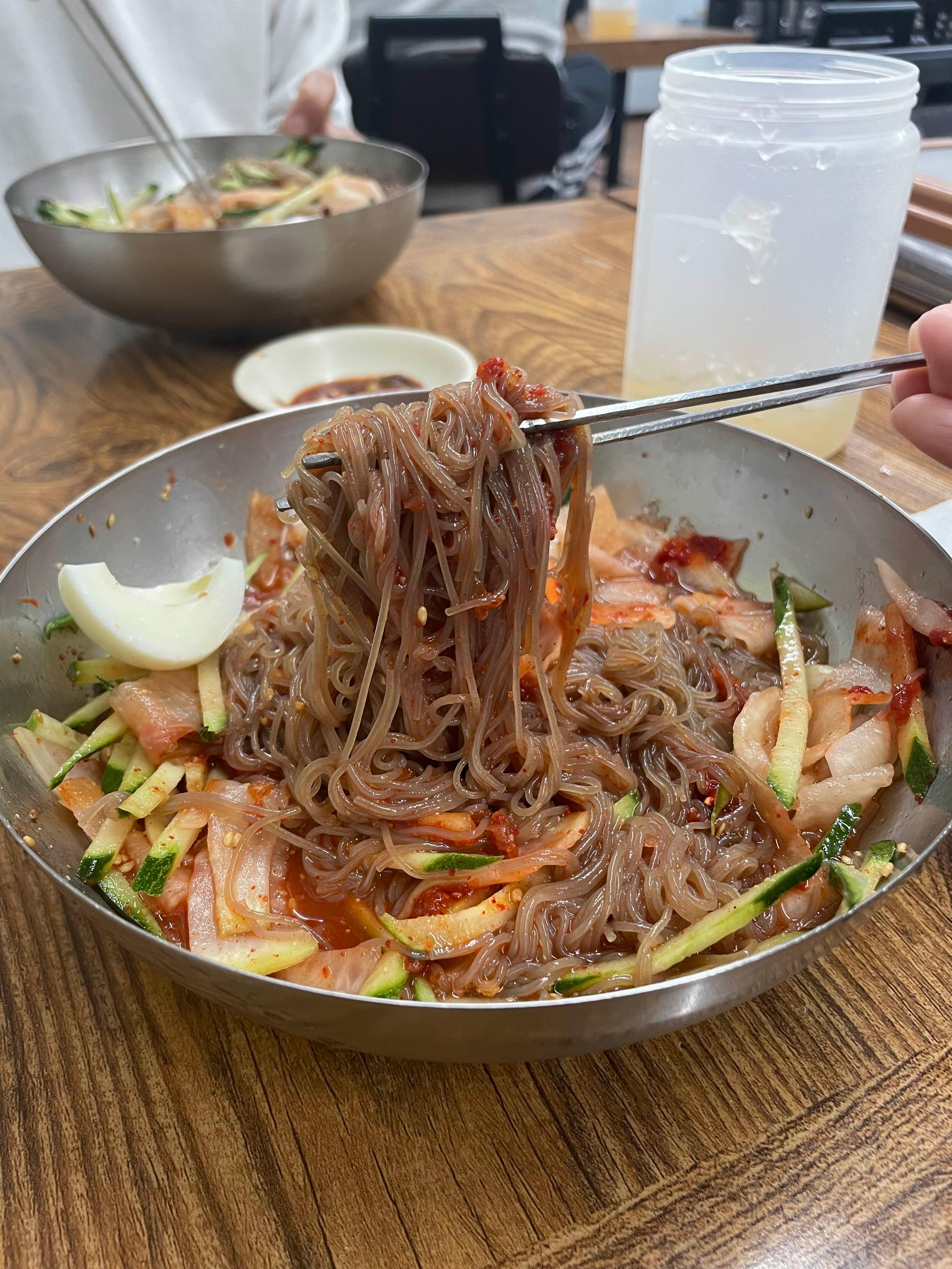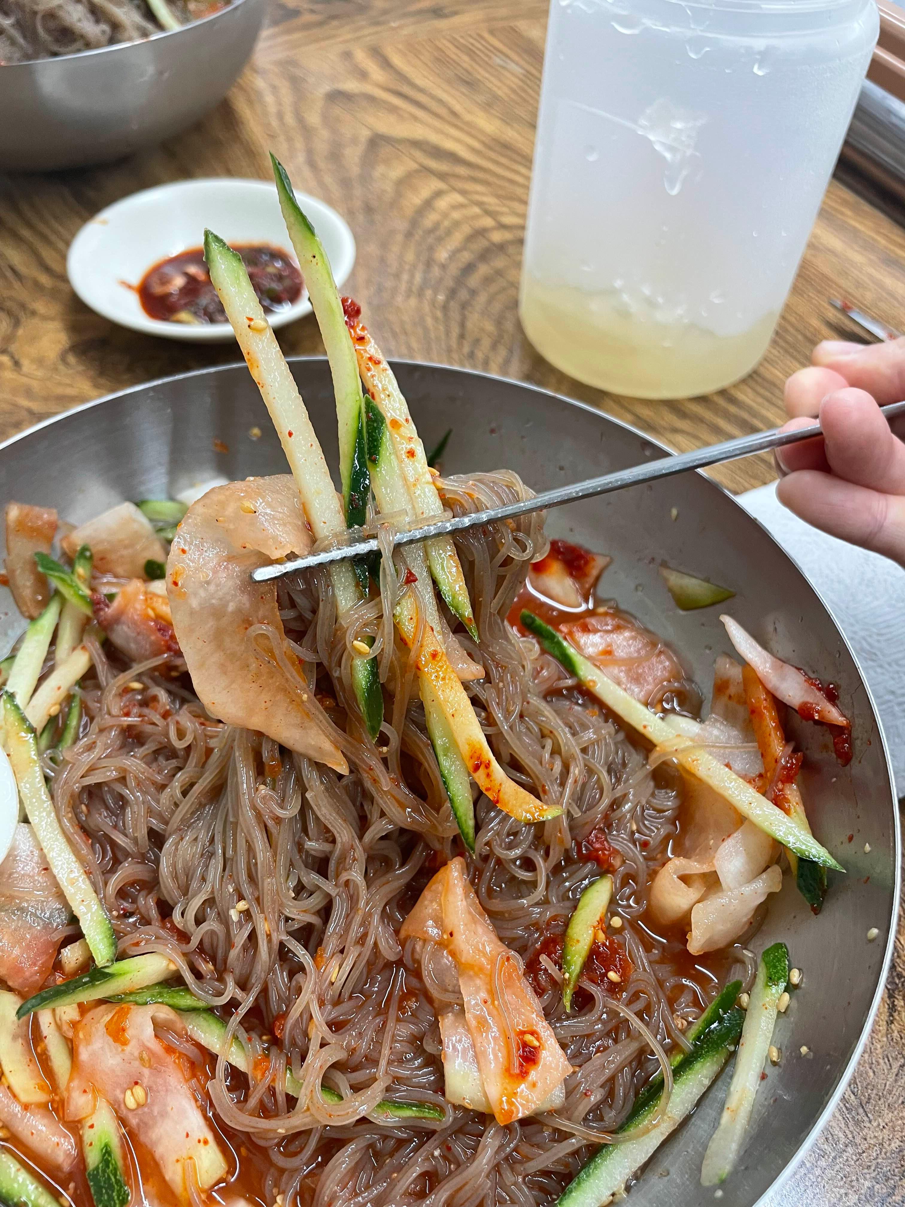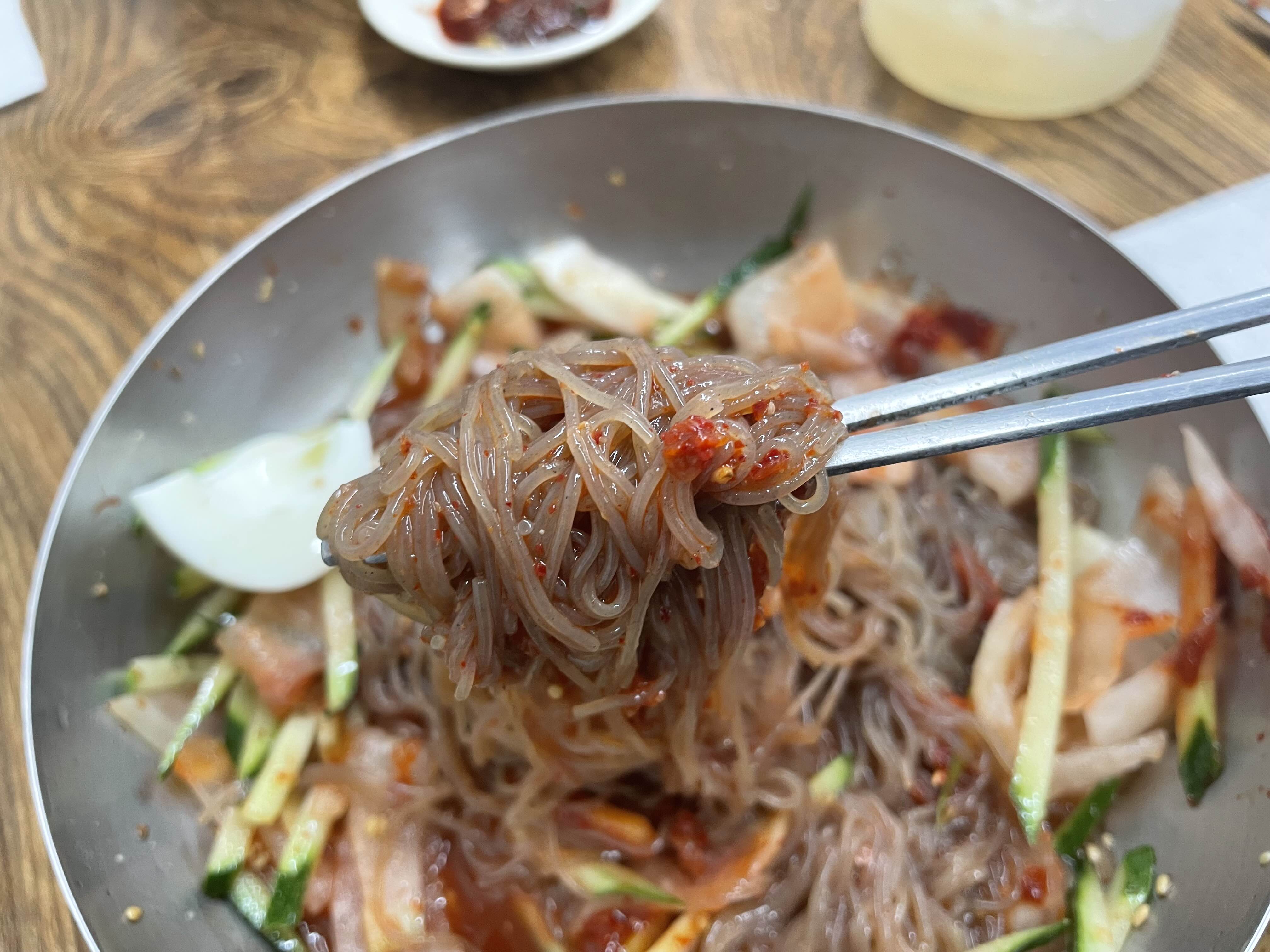 ✔️ 춘천냉면 면발이 얇고 쫄깃하여 식감이 진짜 좋고, 시원한 물회 같이 개운하게 맛있다!