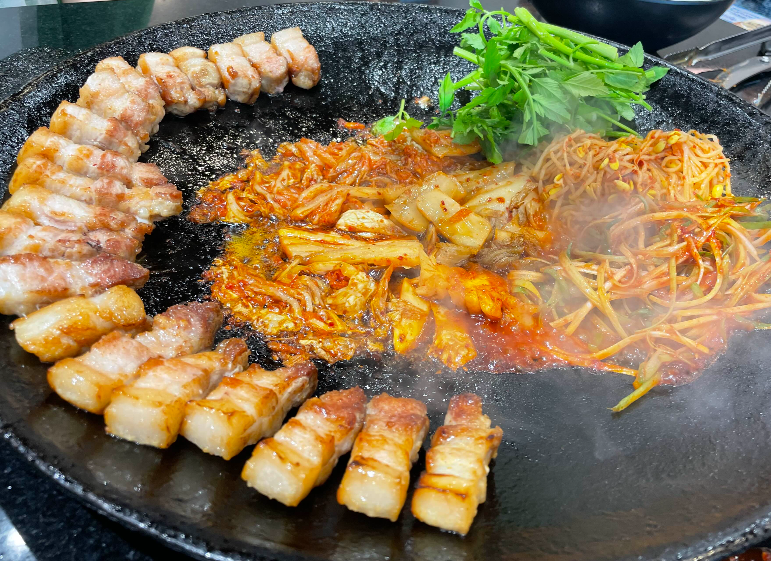 솥뚜껑에 두툼한 삼겹살과 시큼새큼 신김치를 구워주는! 부천 '솥고집'