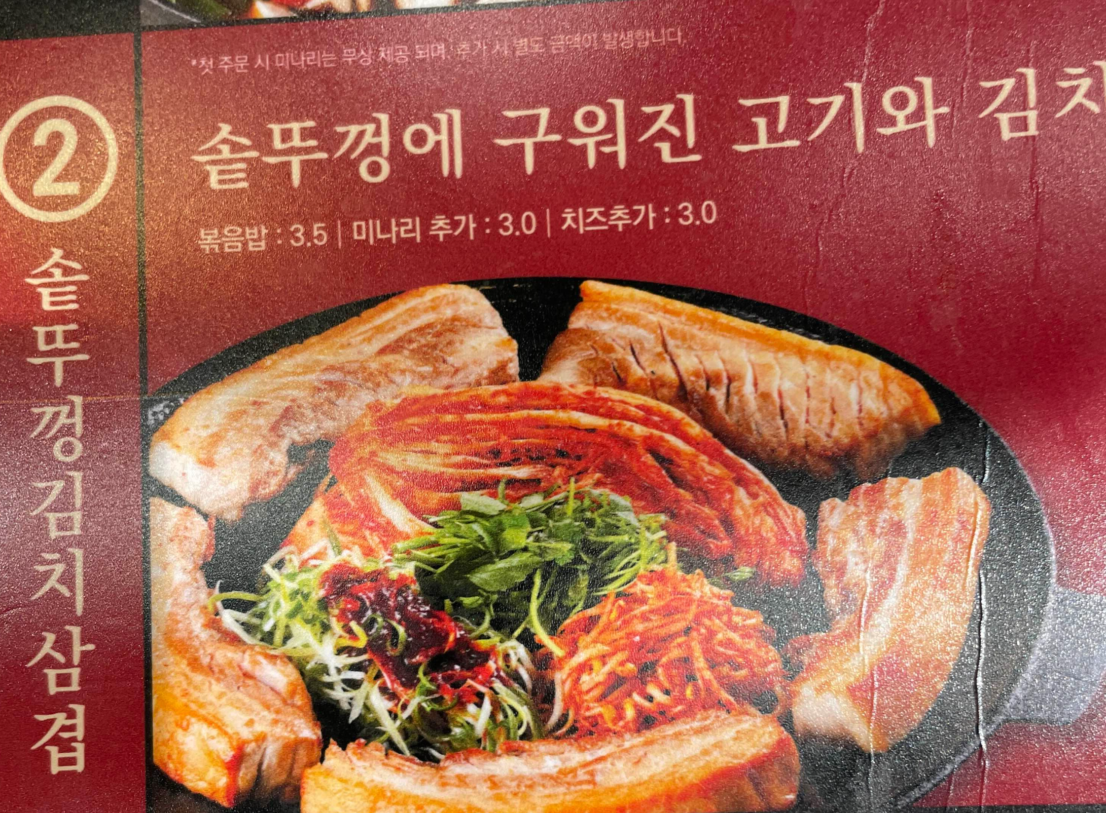바로 2번 솥뚜껑김치삼겹 메뉴에서 골랐다.