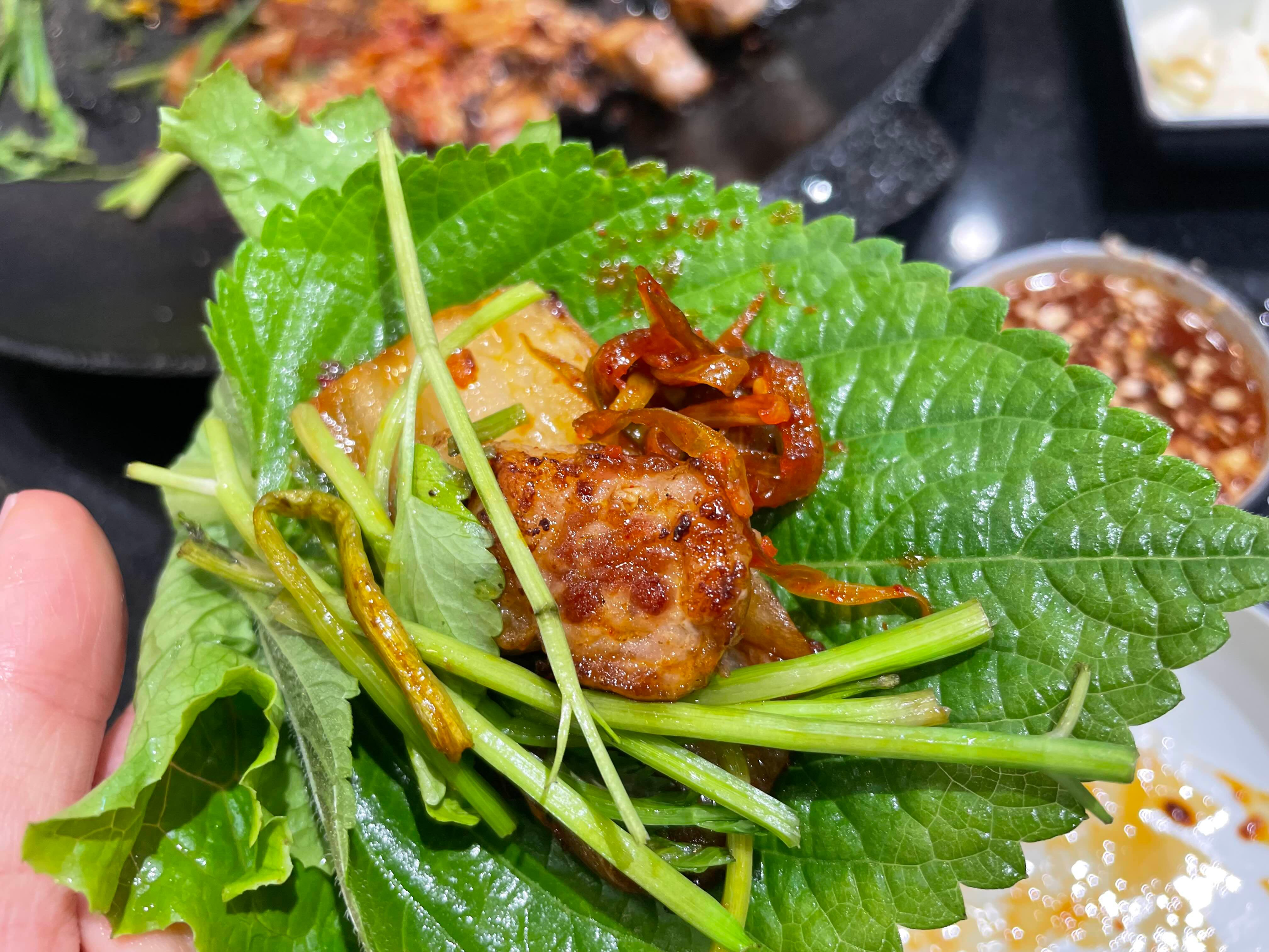 소스에 든 간 마늘이 듬뿍 삼겹살에 묻어 있는 것도 개운함을 더해주는 데 한몫했다.