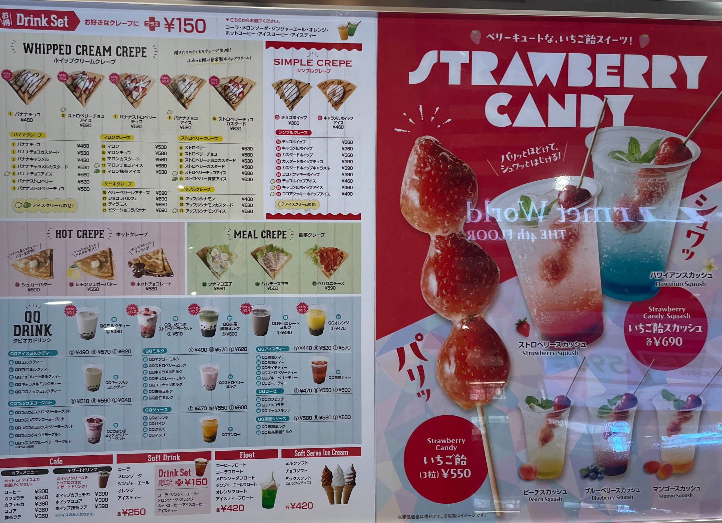 딸기 초코 아이스크림 크레페와 메론 소다