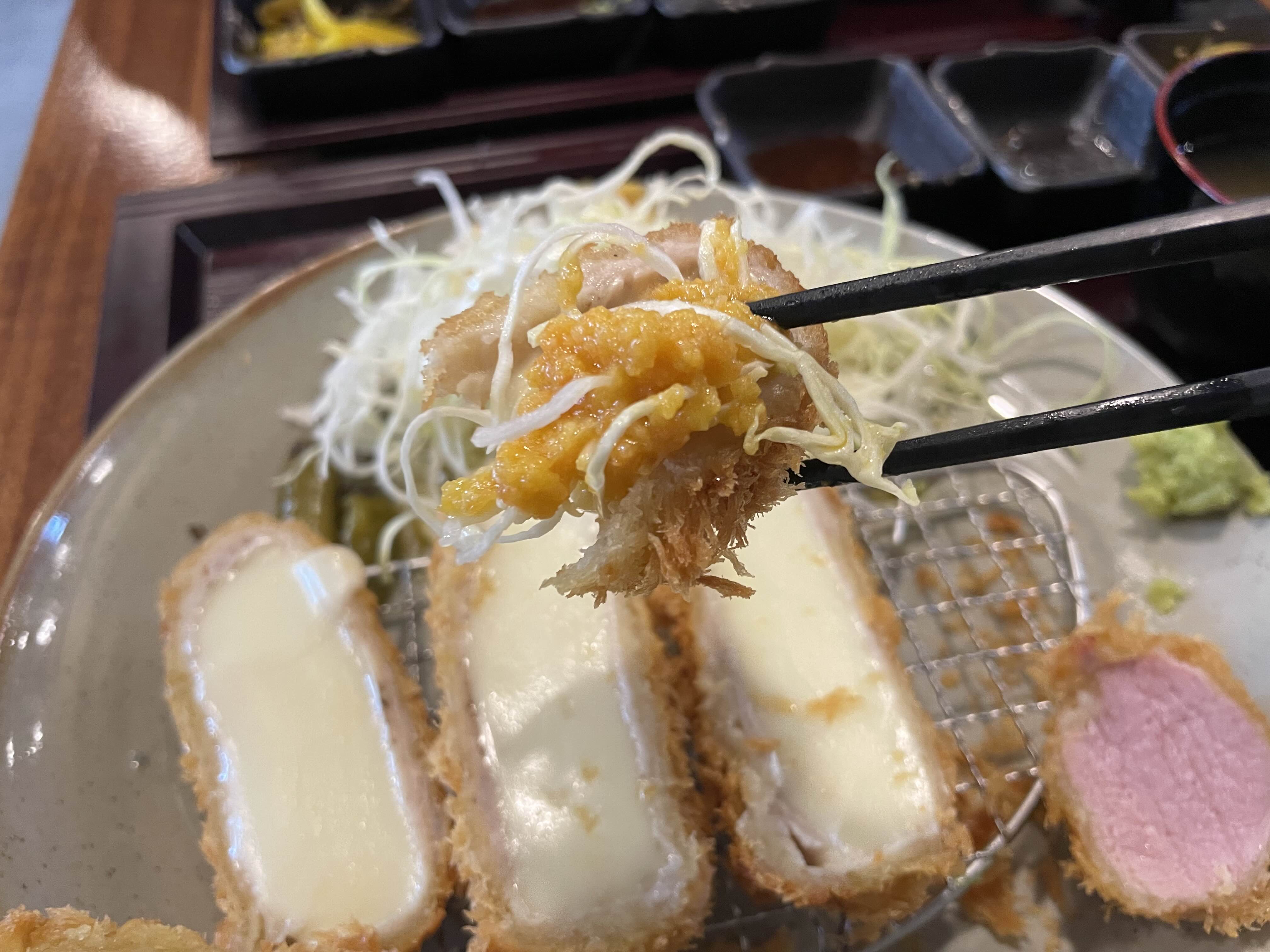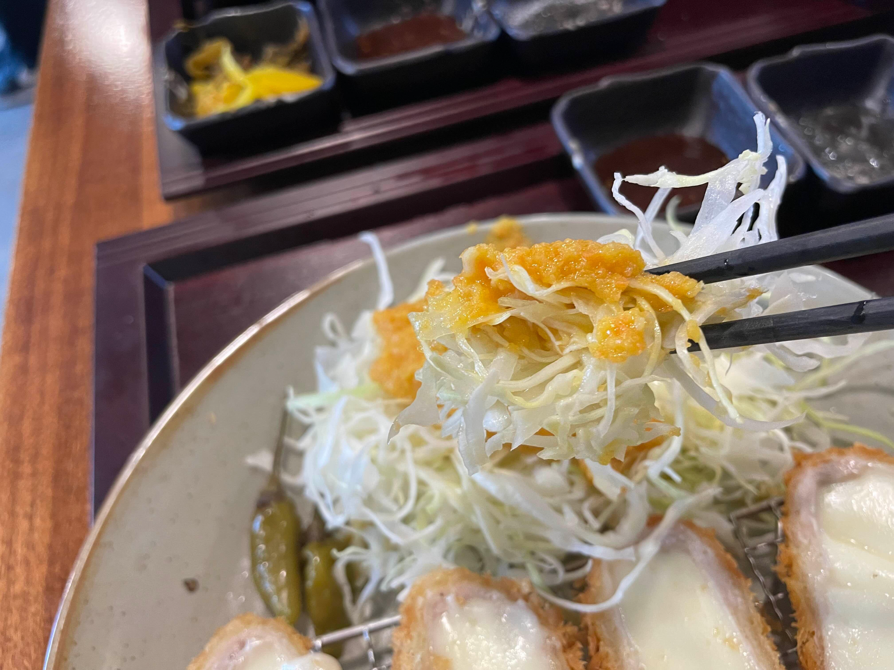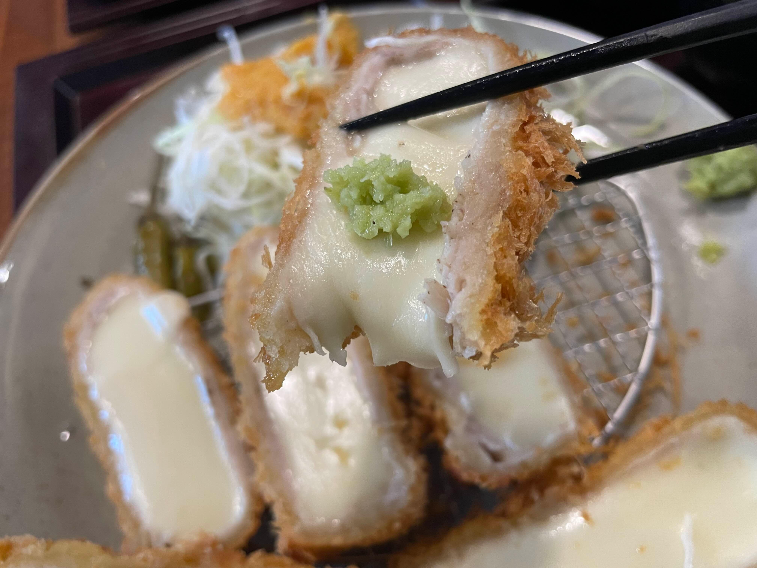와사비를 살짝 찍어먹는 건 치즈카츠와 잘 어울렸다.