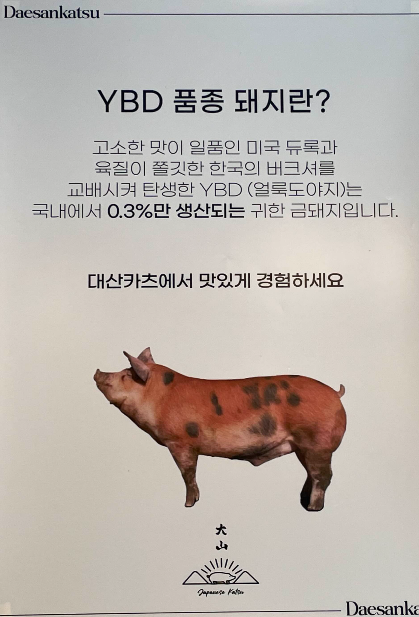 매장 앞에는 입간판으로 YBD 품종 돼지를 쓴다고 광고한다.