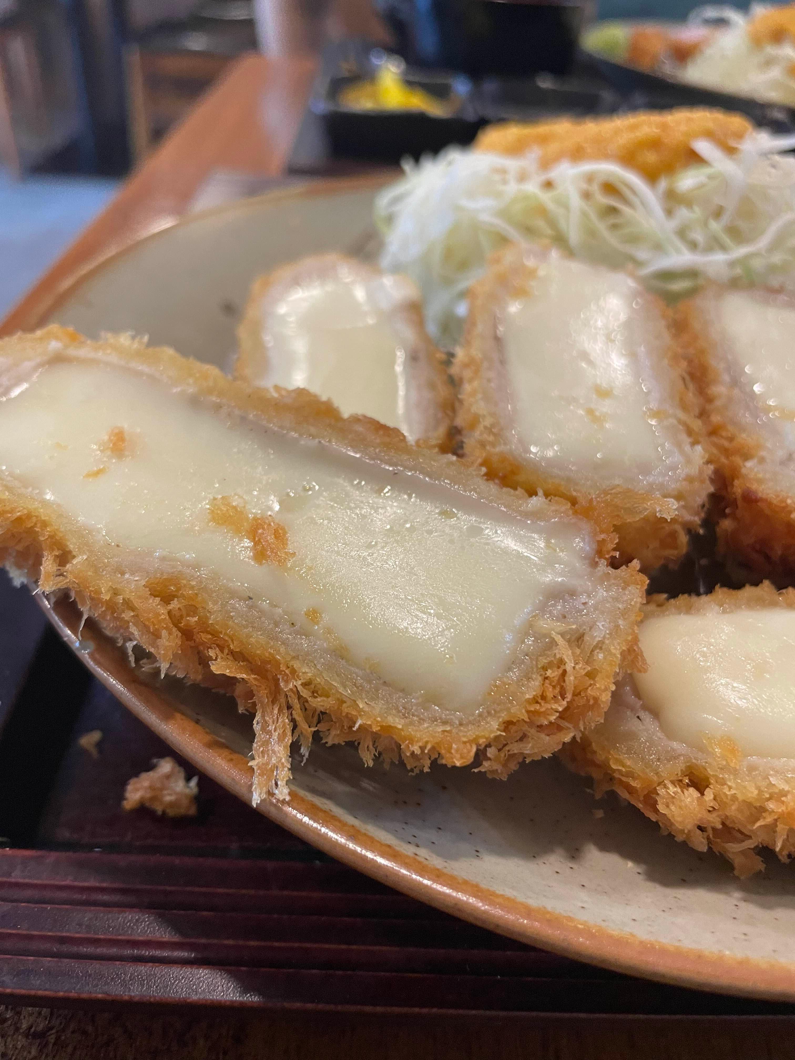 ✔️ 대산카츠에서 파는 치즈카츠는 모짜렐라 치즈가 찰랑찰랑 차있다. 먹음직스러워 보이고, 실제로 맛있다.