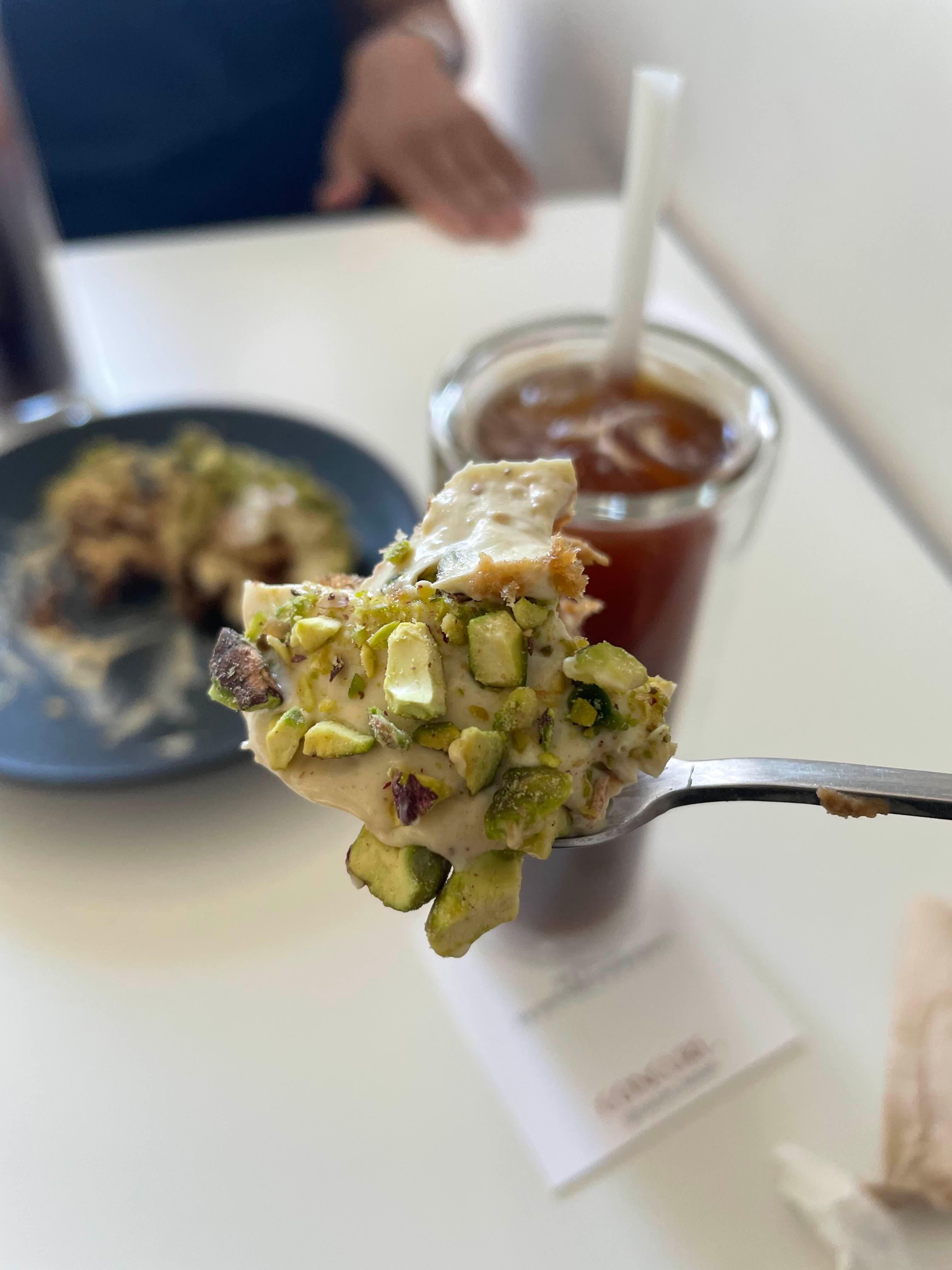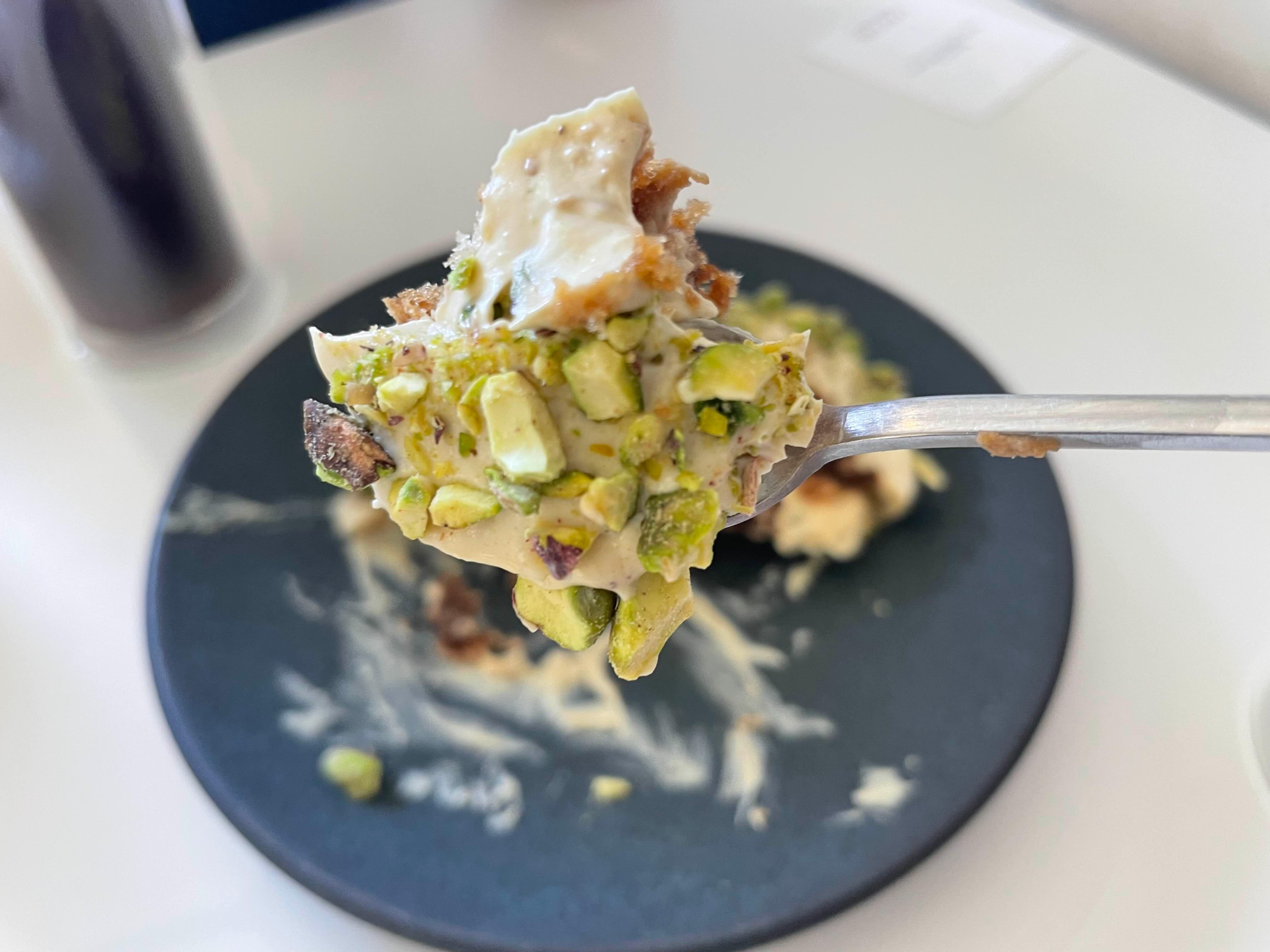 절구로 간 듯 파편이 일정하지 않은 피스타치오가 시각적으로도 미각적으로도 재밌었다.