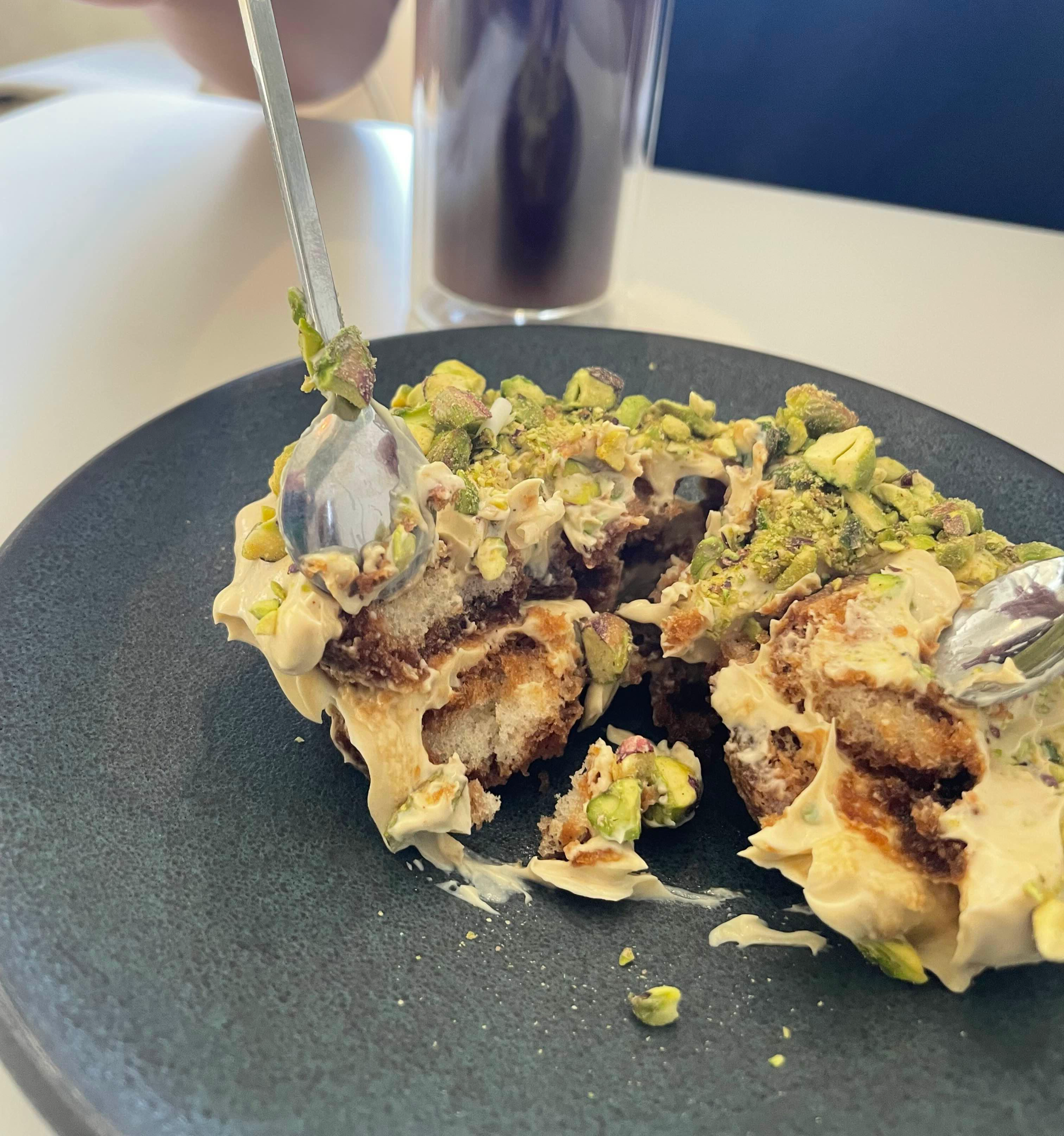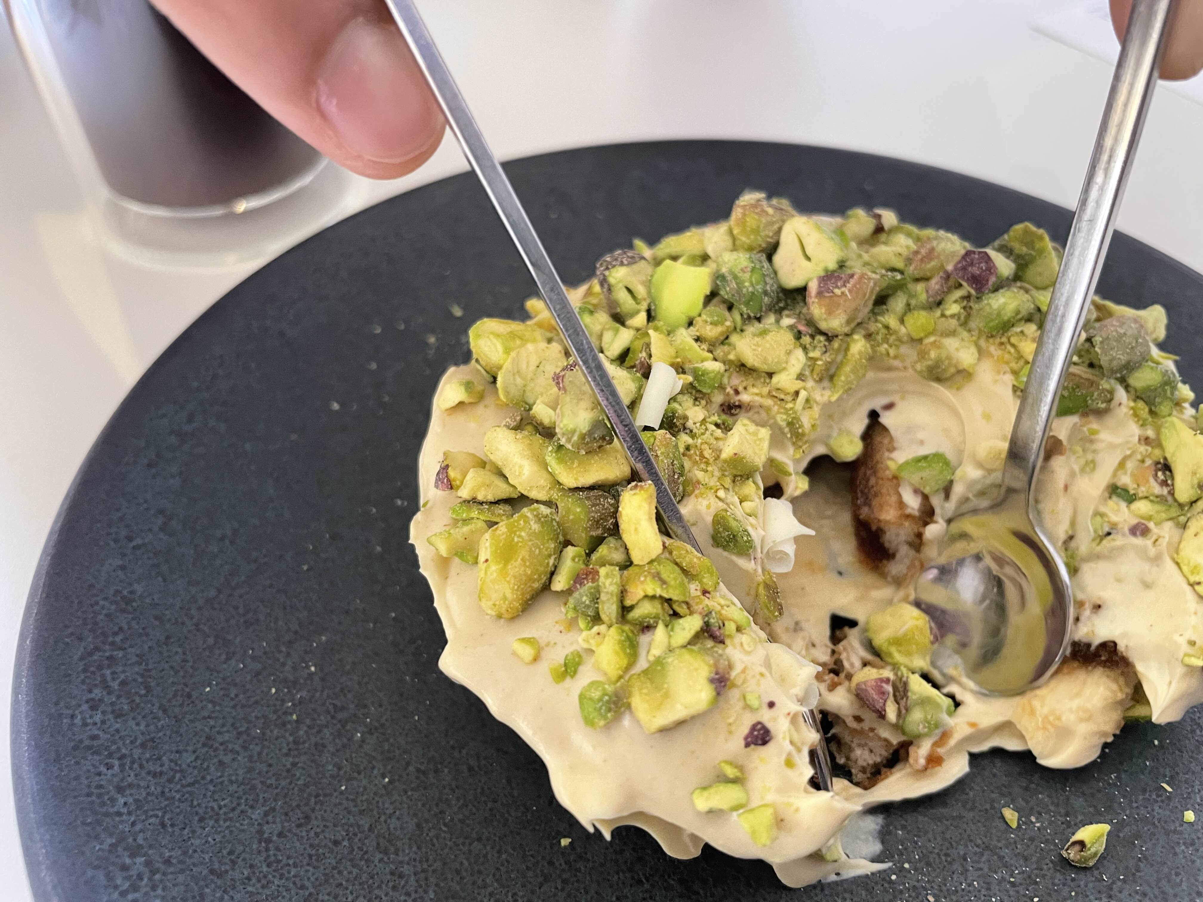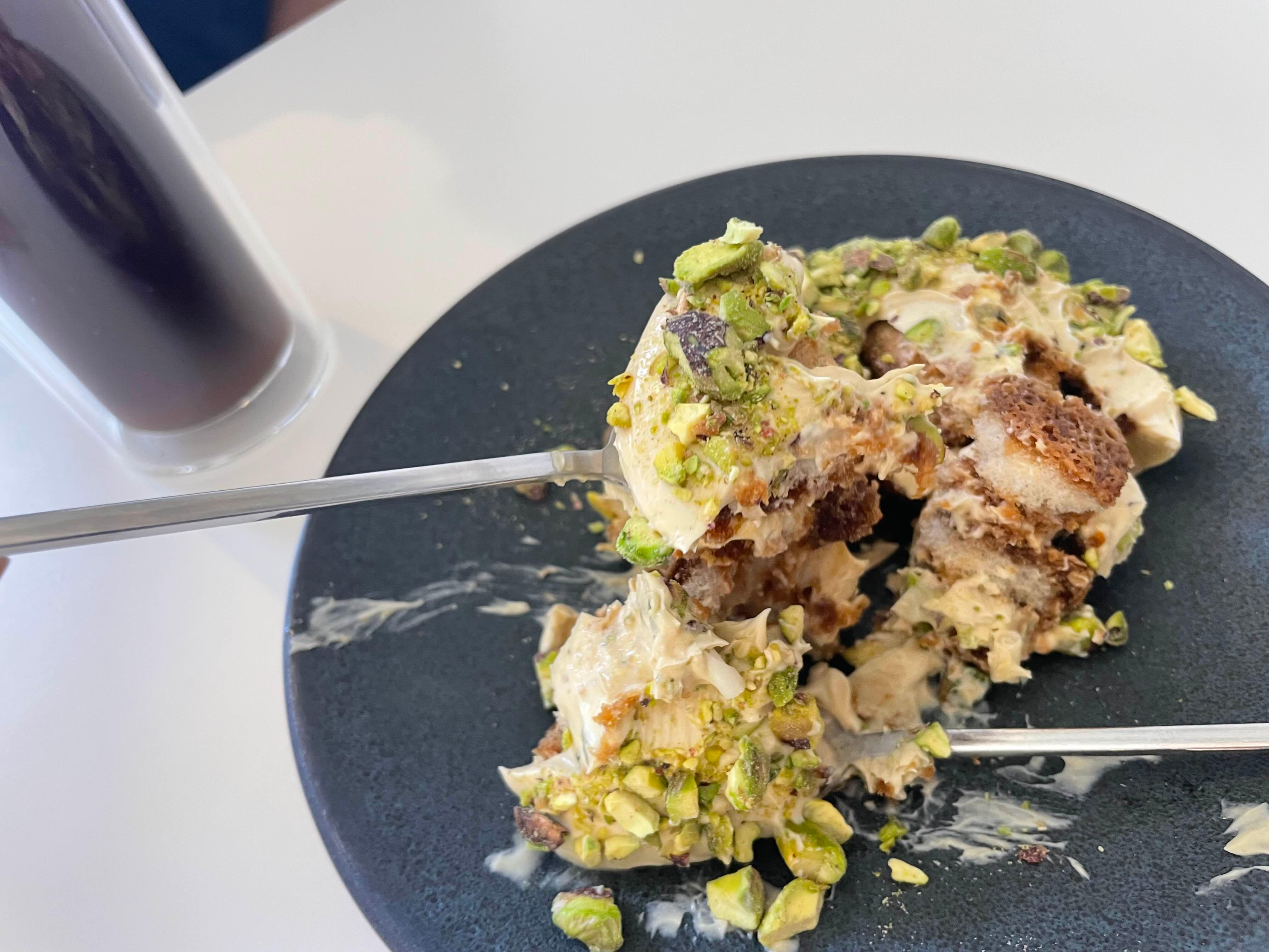 ✔️ 피스타치오 티라미수에 올라간 피스타치오가 절구로 간 듯 다양한 식감이 느껴져 좋았다.