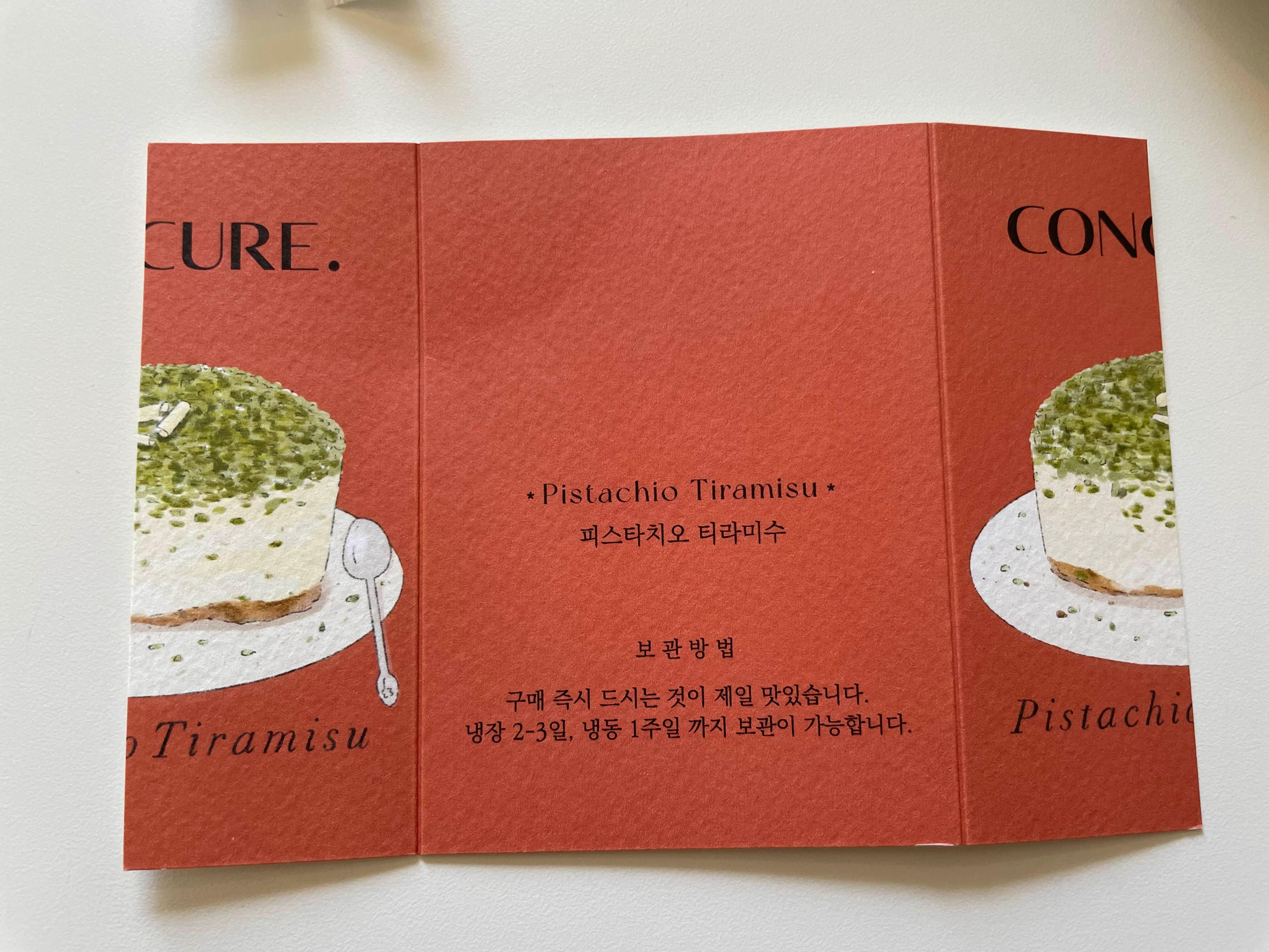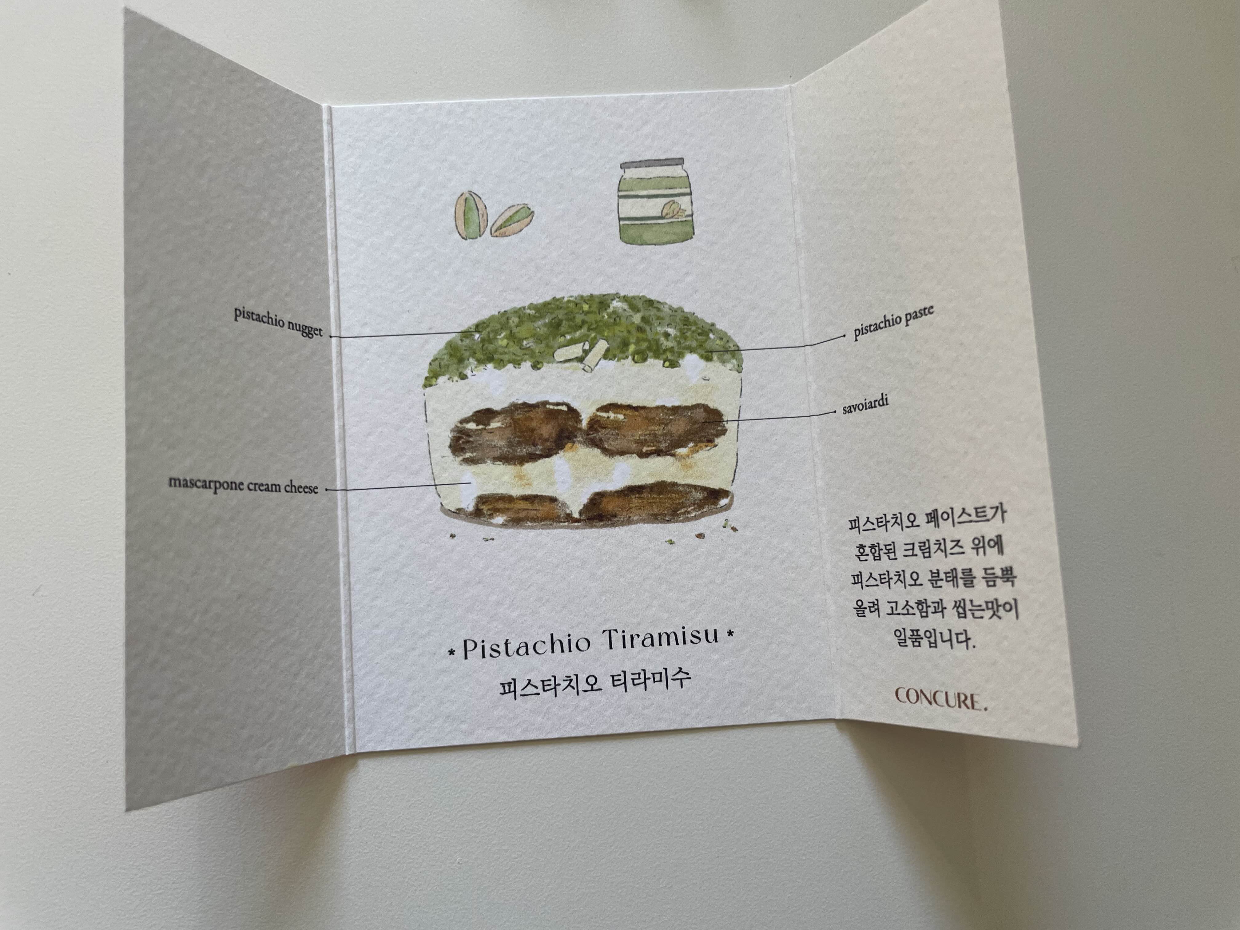 티라미수를 먹기 전, 이 피스타치오 티라미수의 설명서를 읽는 재미도 있었다.