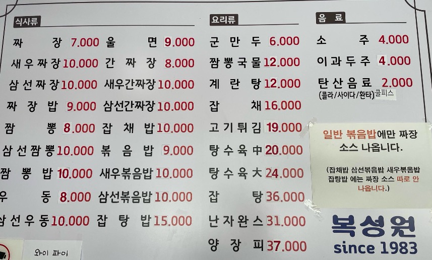 우리는 복성원 베스트 메뉴 2개를 시켰다.