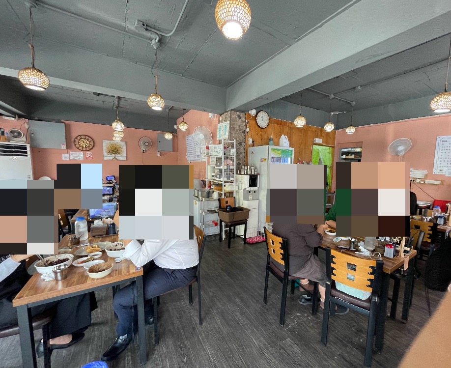 단무지랑 열무김치 반찬을 셀프로 가지러 갈 때 다른 테이블을 보니