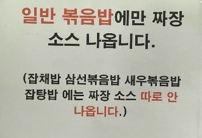 잡채밥이 빨갛고 매콤한 스타일이다. 짜장 소스는 같이 안 나온다.