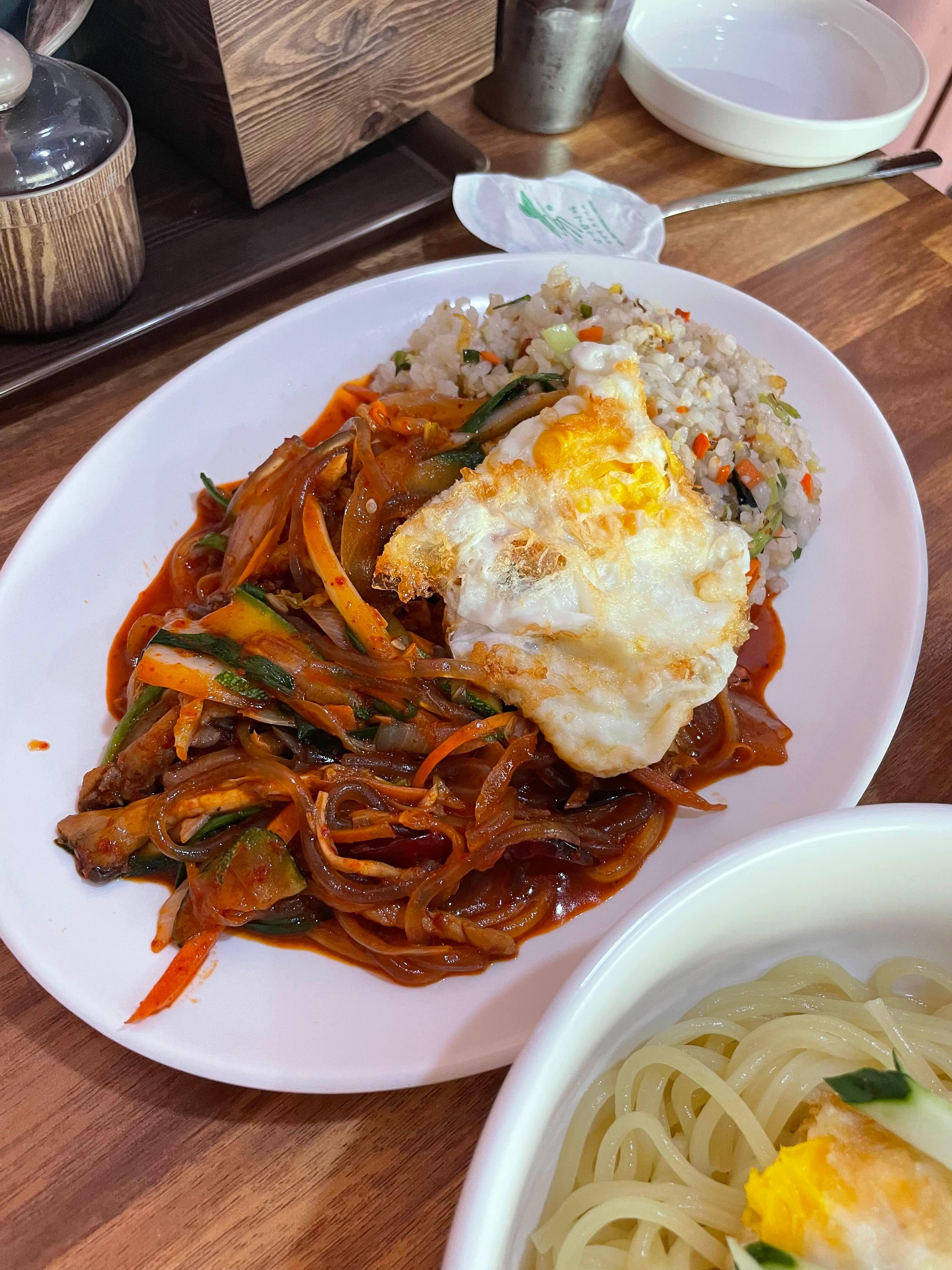 - 잡채밥 맛집답게 잡채밥이 매콤하니 맛있다.