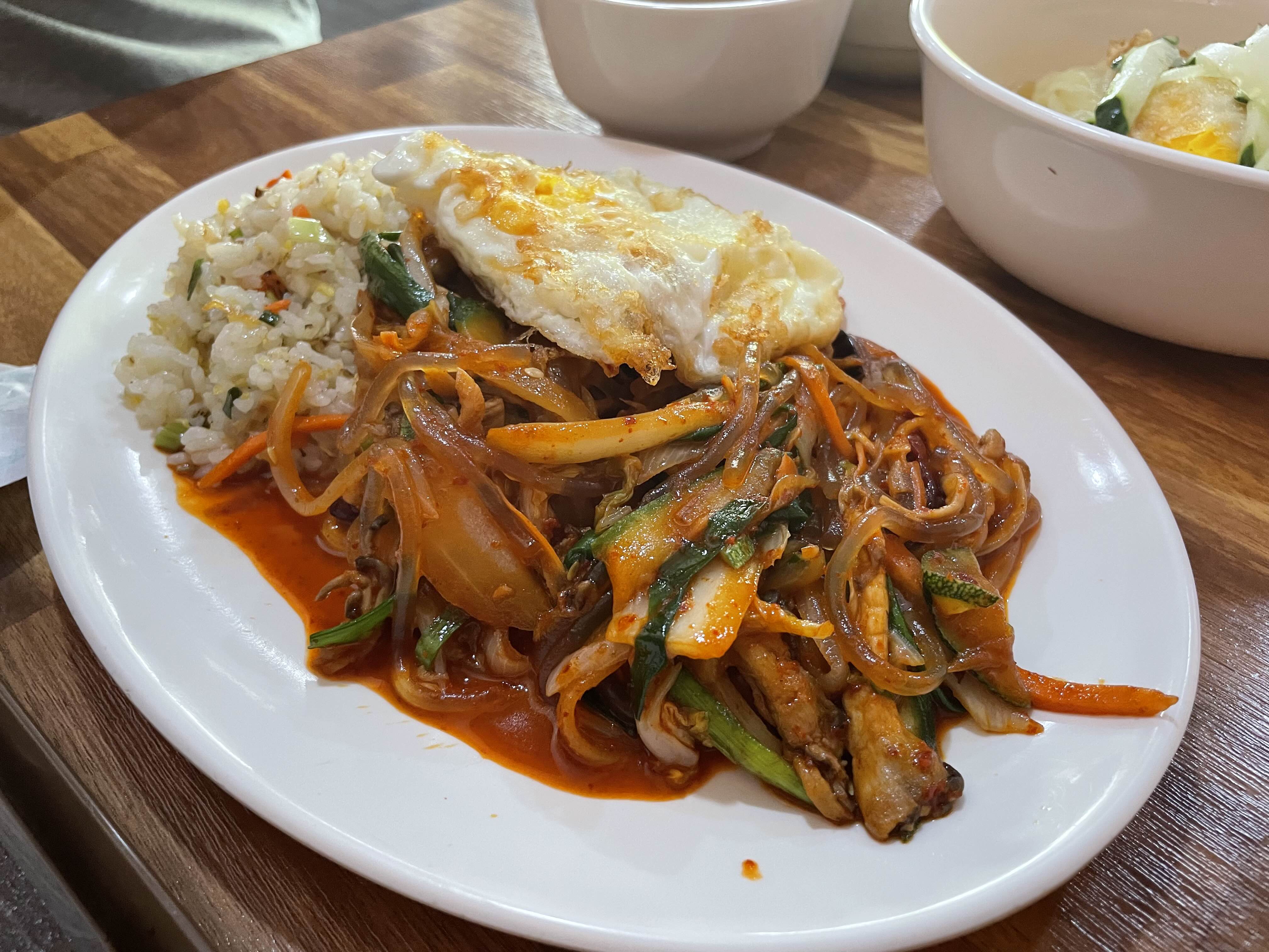 잡채밥은 갈색이라고 생각했는데, 여기 잡채밥은 빨갛고, 약간 오징어볶음 덮밥처럼 생겼다.