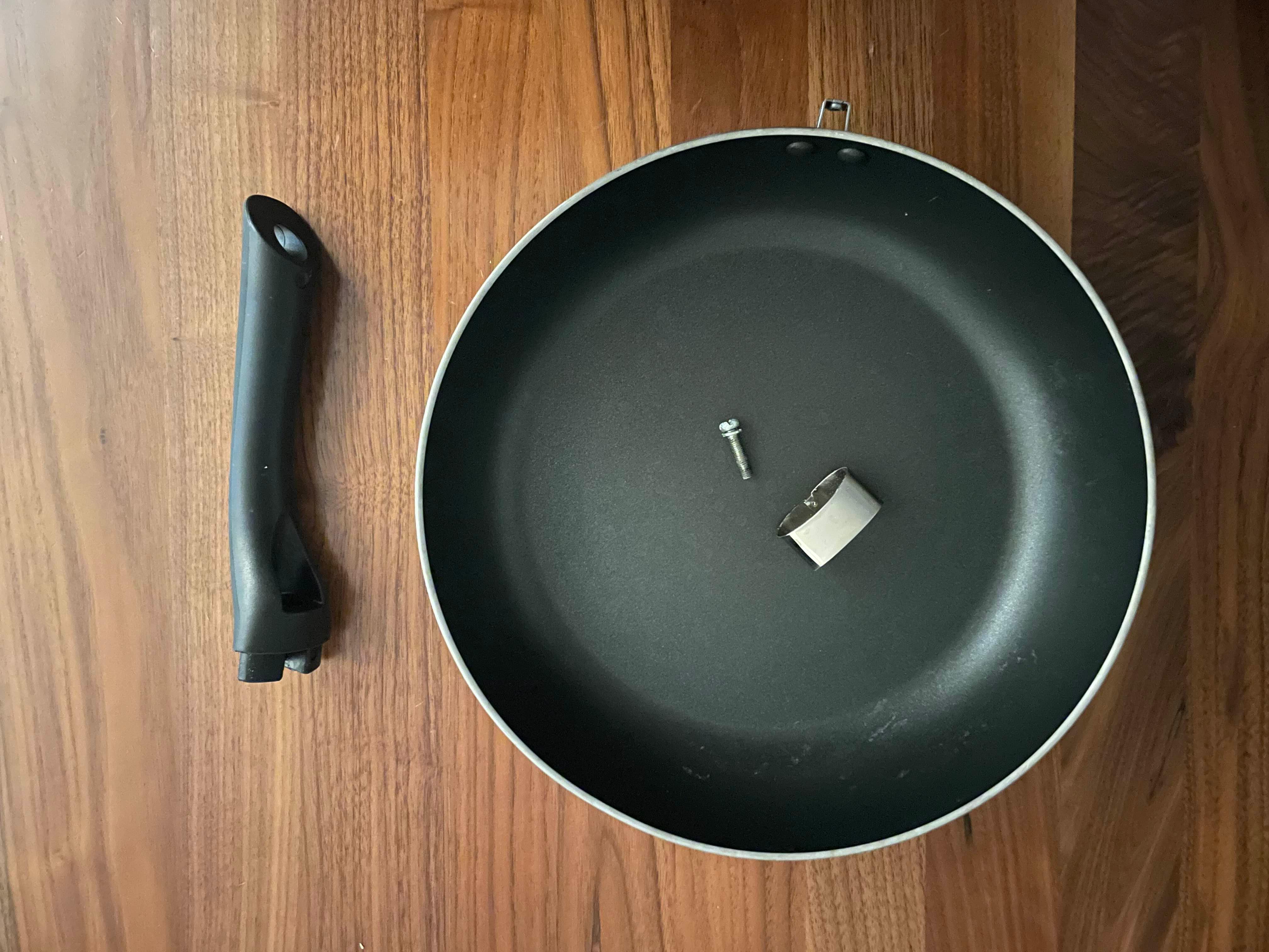 후라이팬과 손잡이 사이에 나사를 풀러 분리한다.