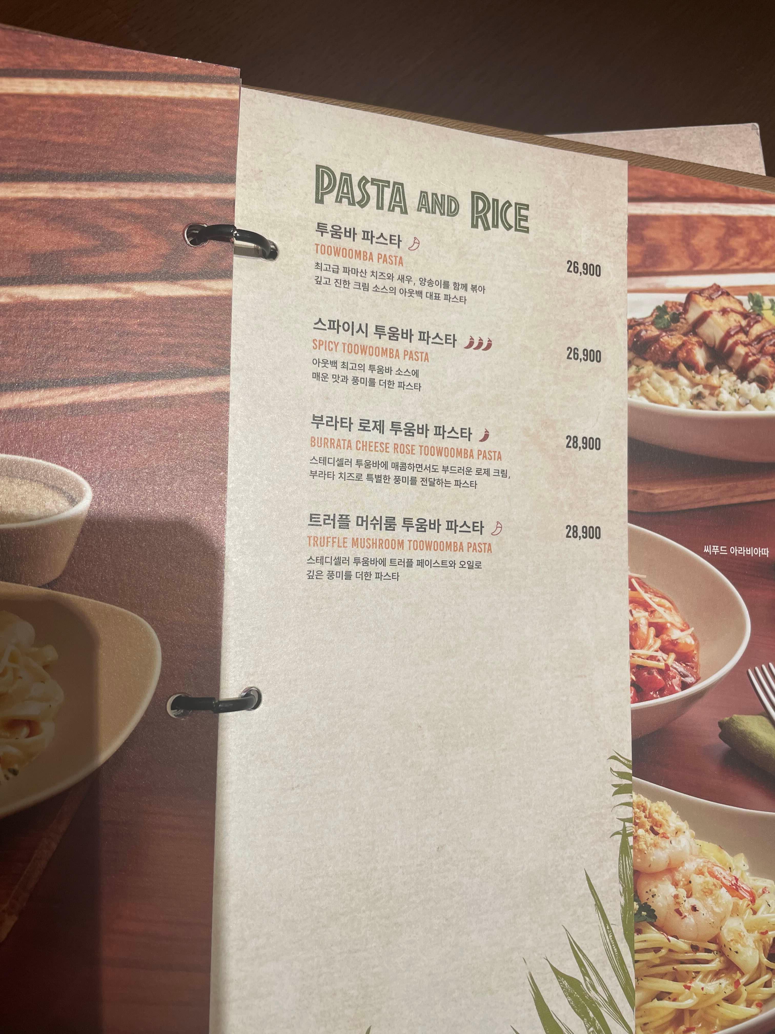 아웃백 투움바 파스타가 너무 먹고 싶었다.