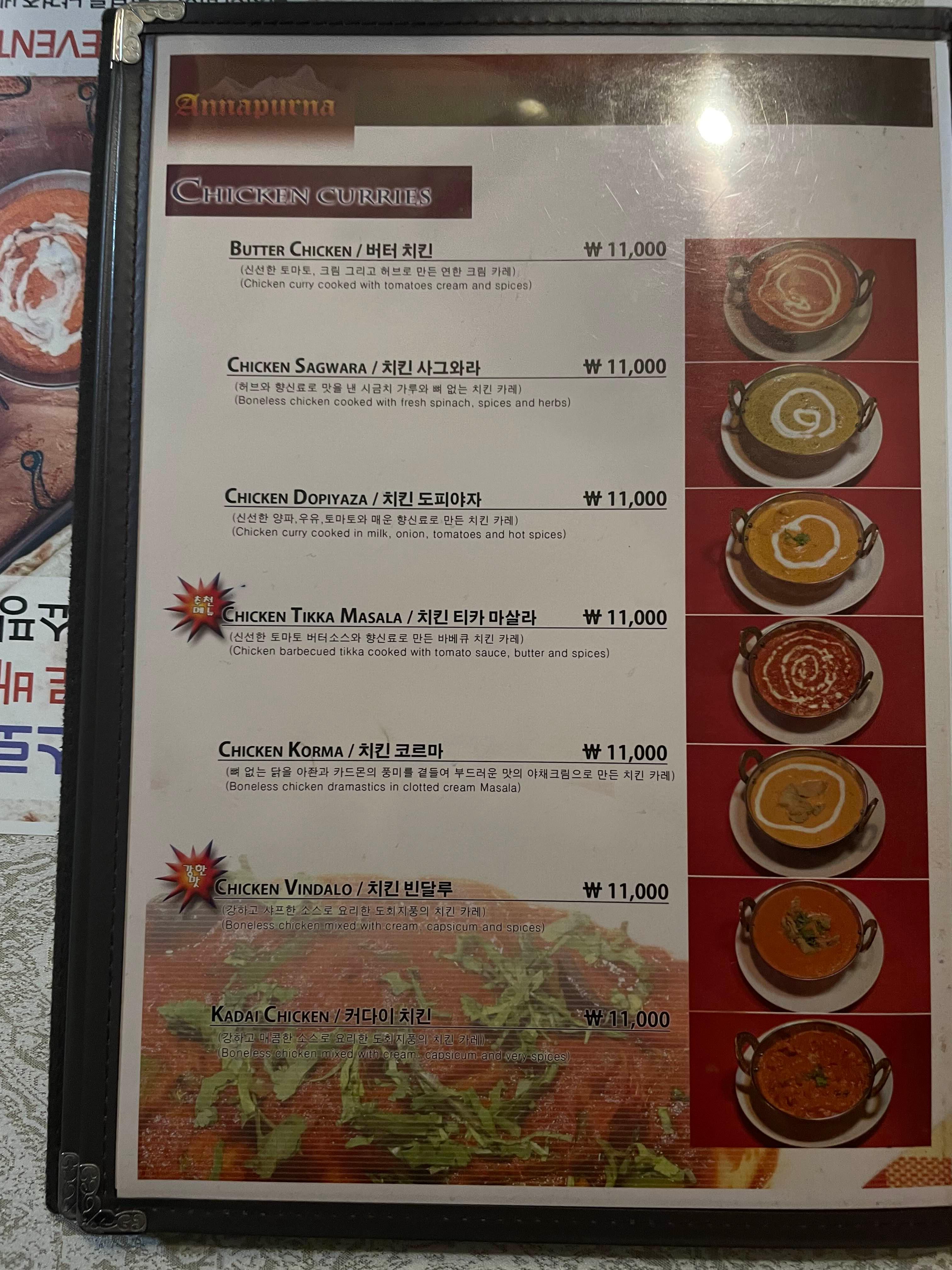 닭고기가 호불호가 덜하면서 어느 인도요리 레스토랑을 가도 성공적이었다.