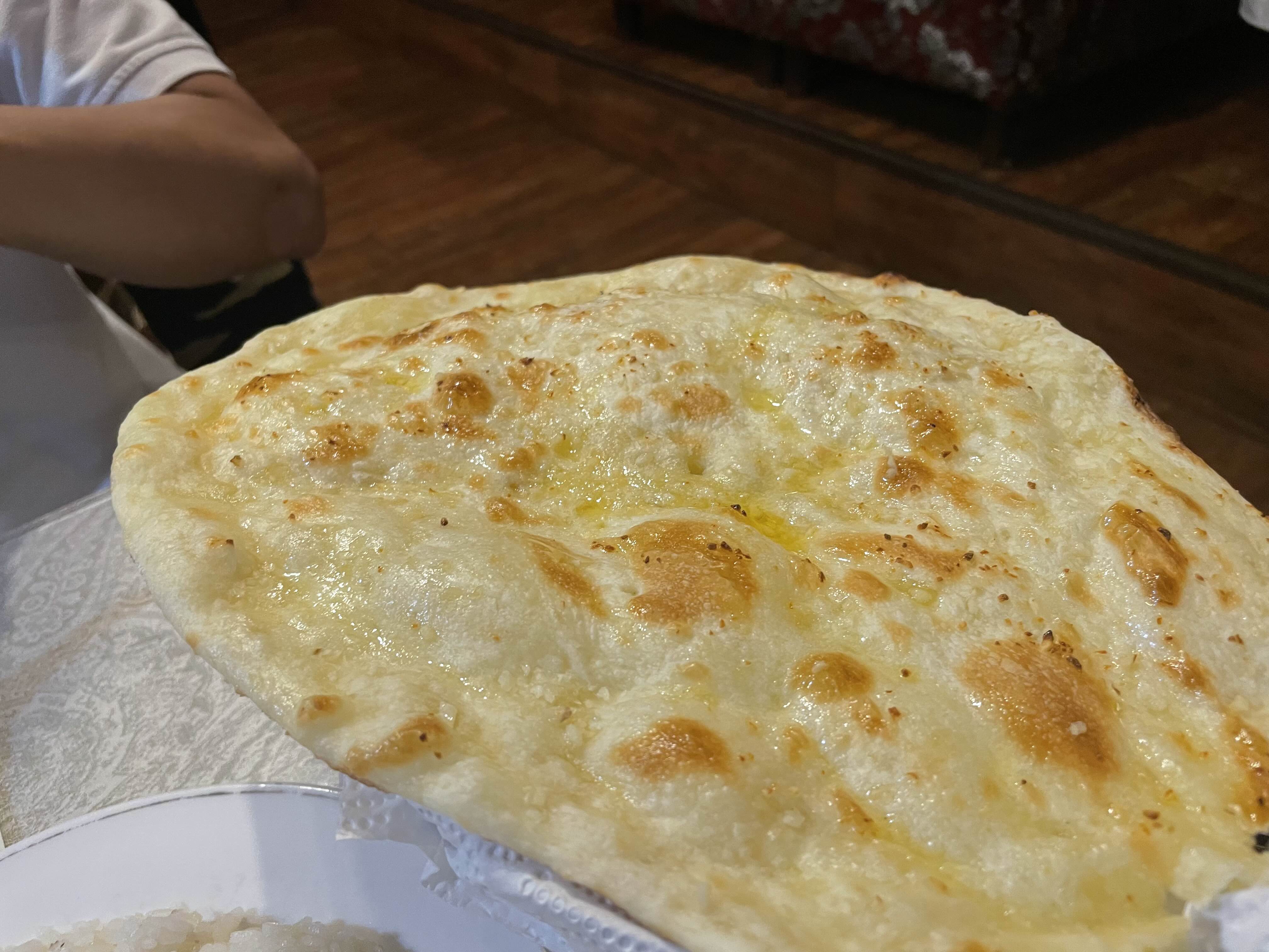 - 화덕에 구운 난은 집에서 해 먹기 힘든데, 불에 구워 쫄깃한 난을 먹을 수 있다.