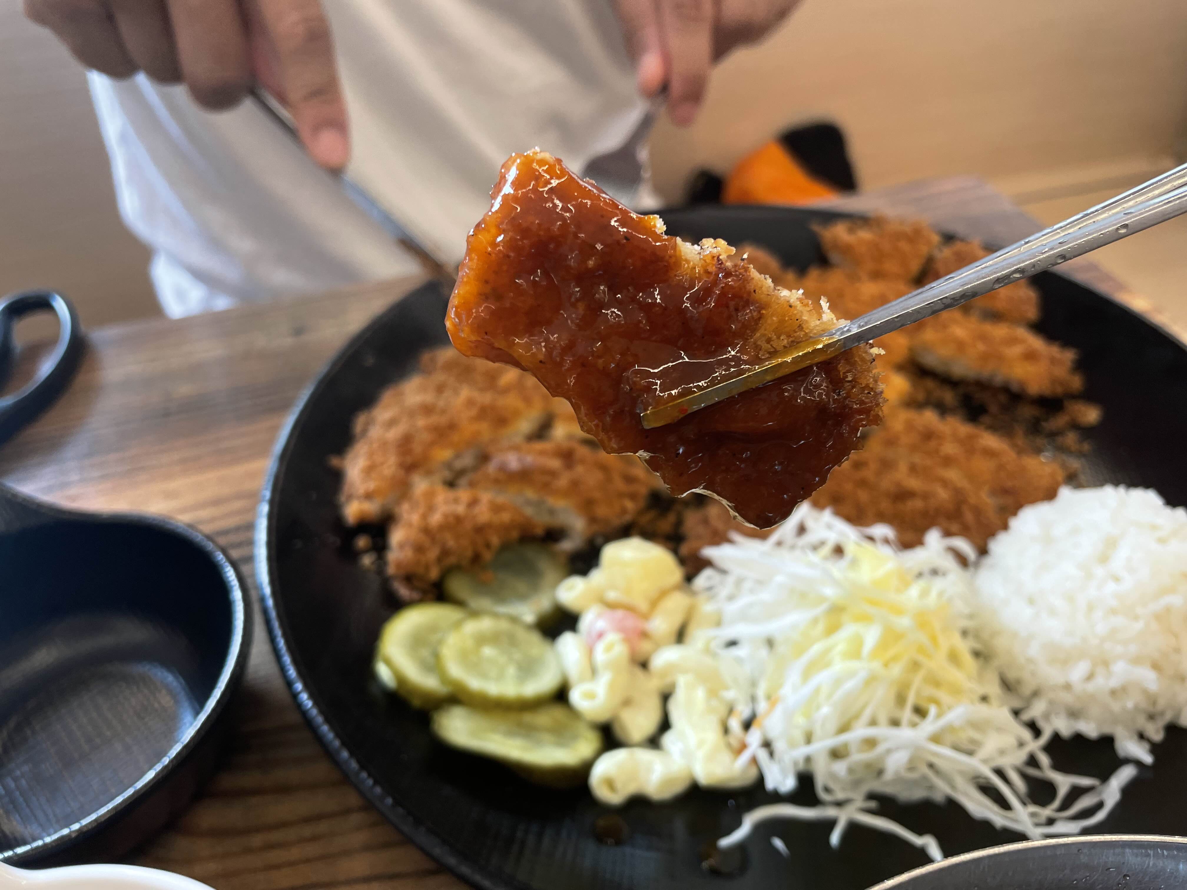 마지막으로는 역시 돈가스를 매콤소스에 푹 찍어 먹는 것으로 마무리하..