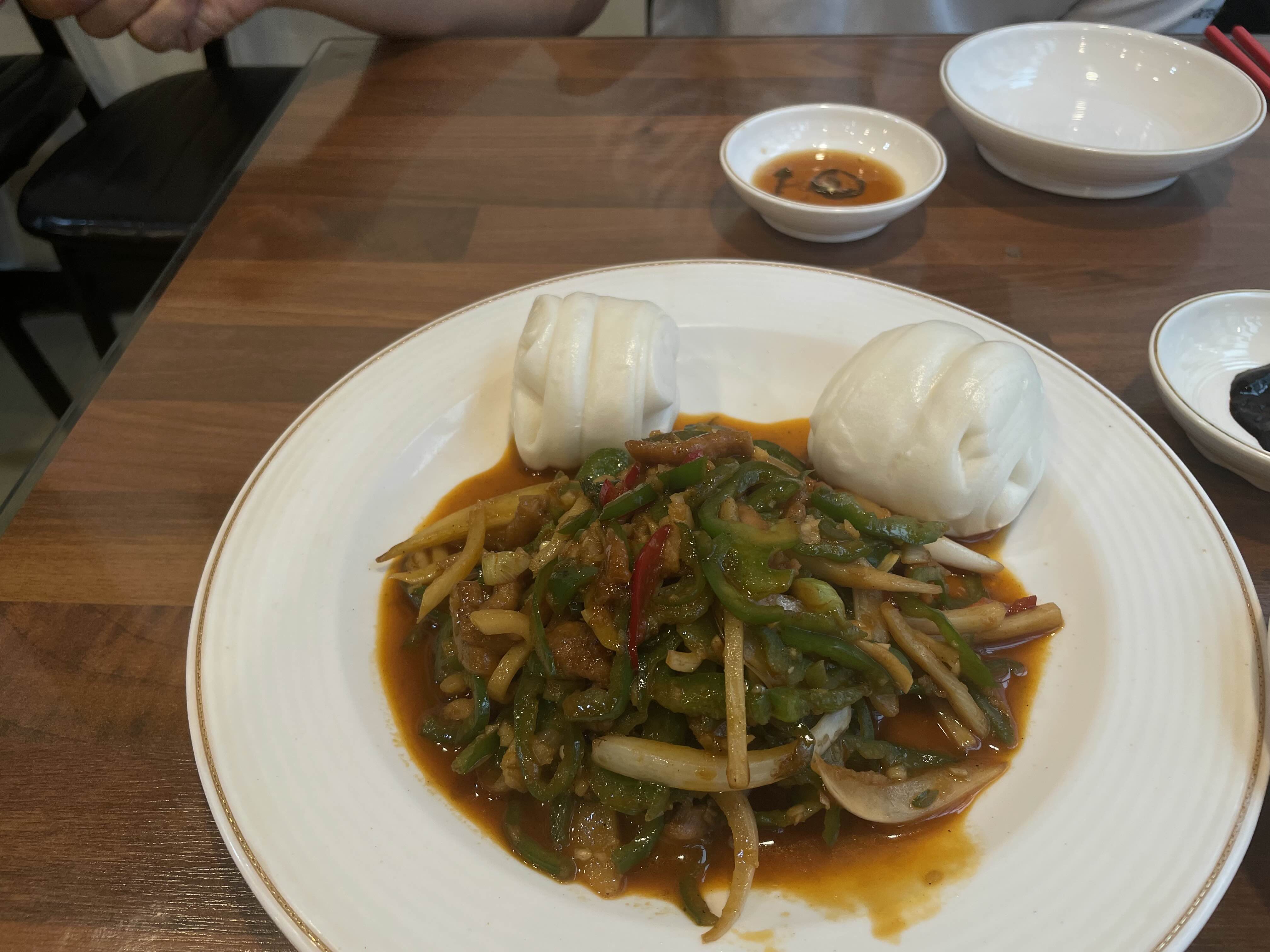 고추잡채는 살짝 매콤해서 좋았다. 아삭아삭하게 볶은 피망과 꽃빵은 정말 잘 어울린다.