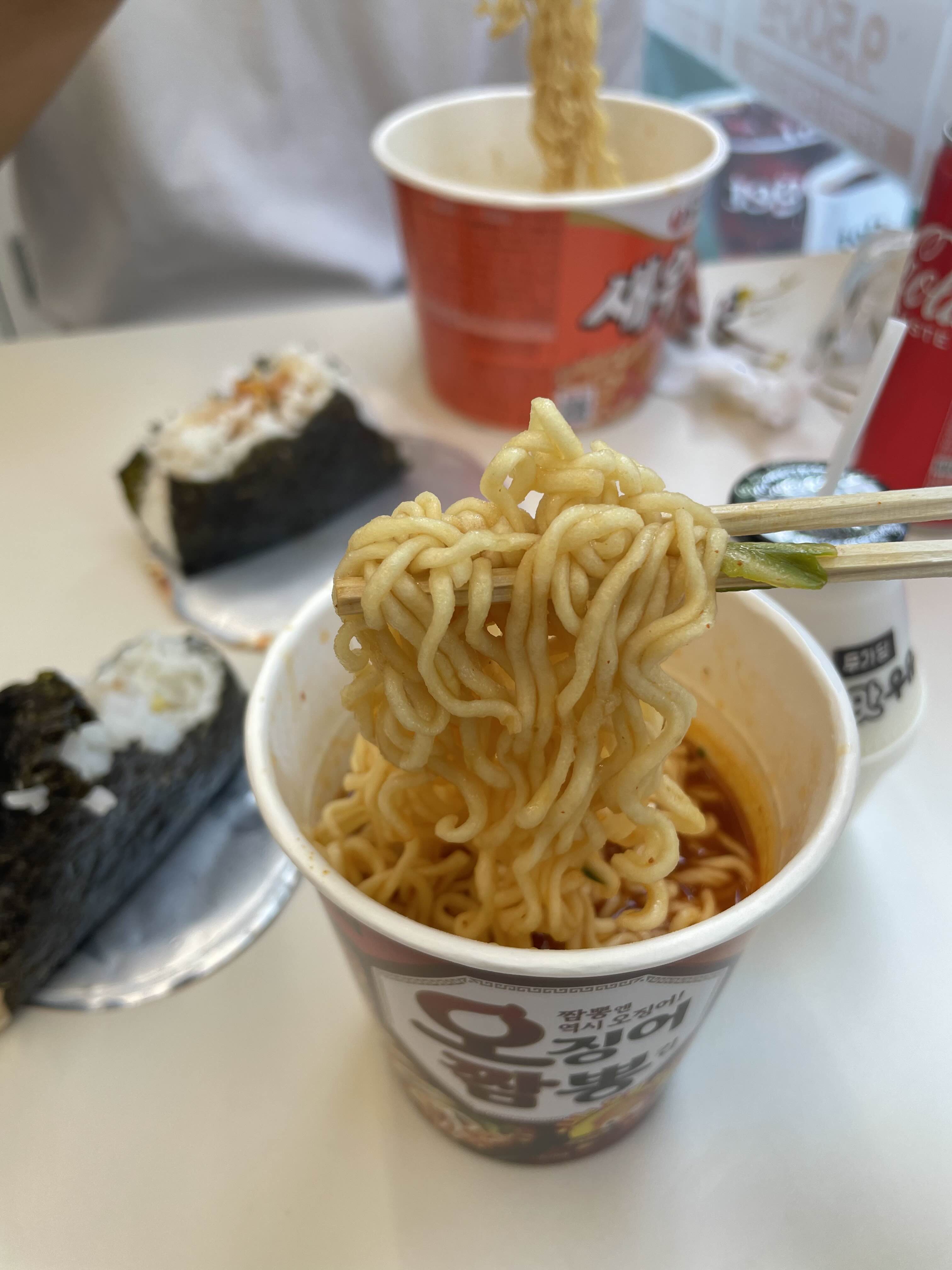 자리를 잡은 옆 테이블에는 초등학생들이 컵라면을 후룩후룩 컵라면을 먹고 있었다.