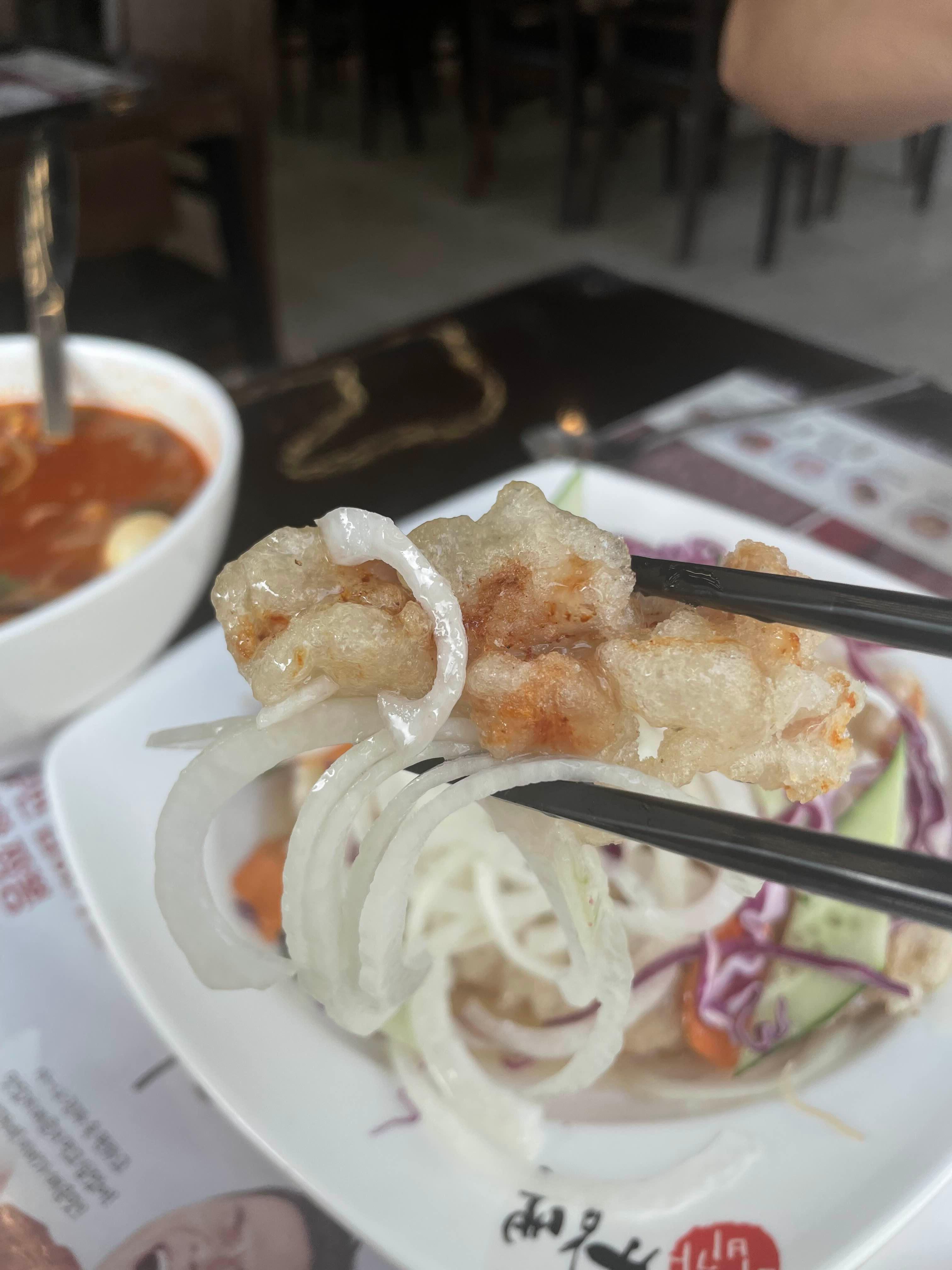 위에 얇게 썬 생양파와 오이, 당근, 양배추가 올라가져 있는데, 이게 은근 매력 포인트였다.