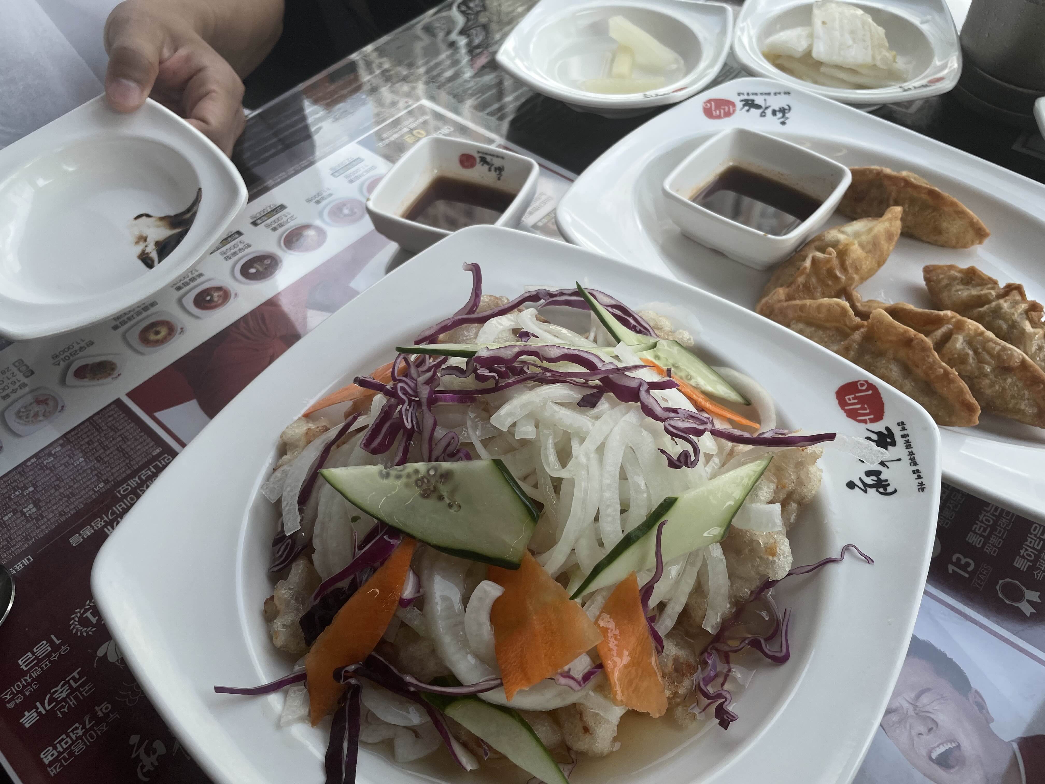 - 탕수육에 얇게 썬 채소가 듬뿍 올라가는 데, 아삭아삭하니 느끼함을 잡아줘서 좋았음. 탕수육은 찹쌀탕수육 스타일
