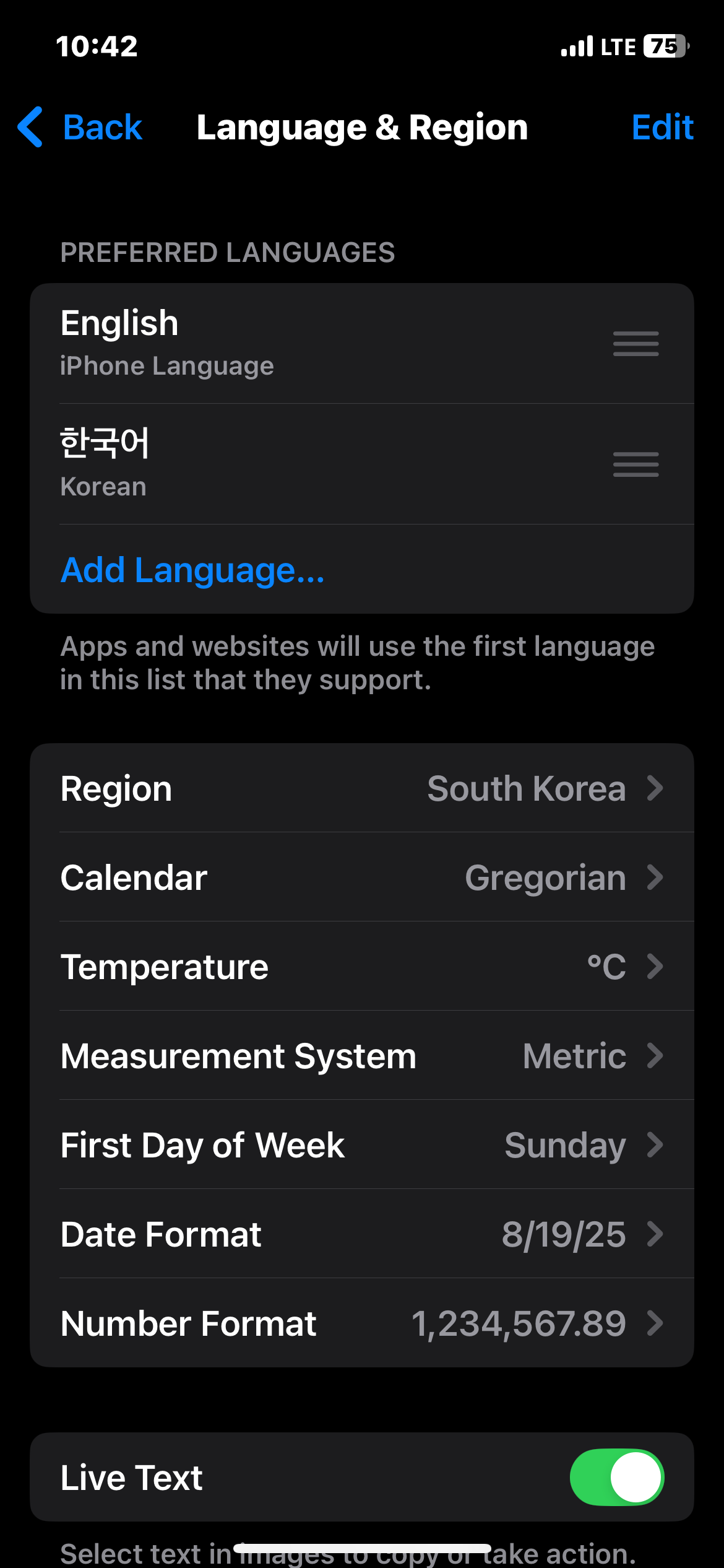 그러기 위해 하루 중 제일 많이 시간을 보내는 핸드폰 설정을 한국어에서 영어로 바꿨다.