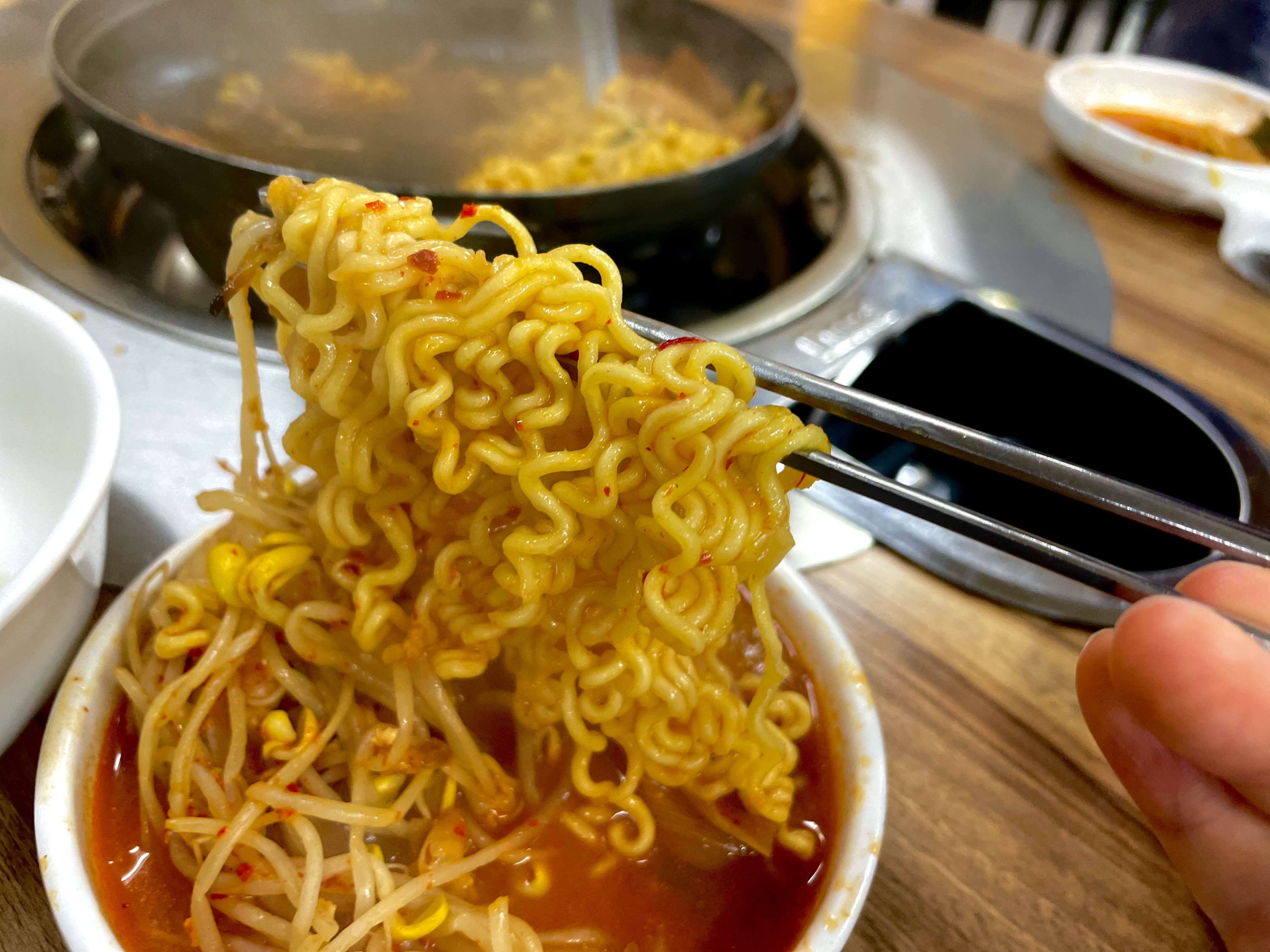 생각보다 라면 사리가 육수를 많이 먹는다는 걸 눈 앞에서 확인한 순간이었다.