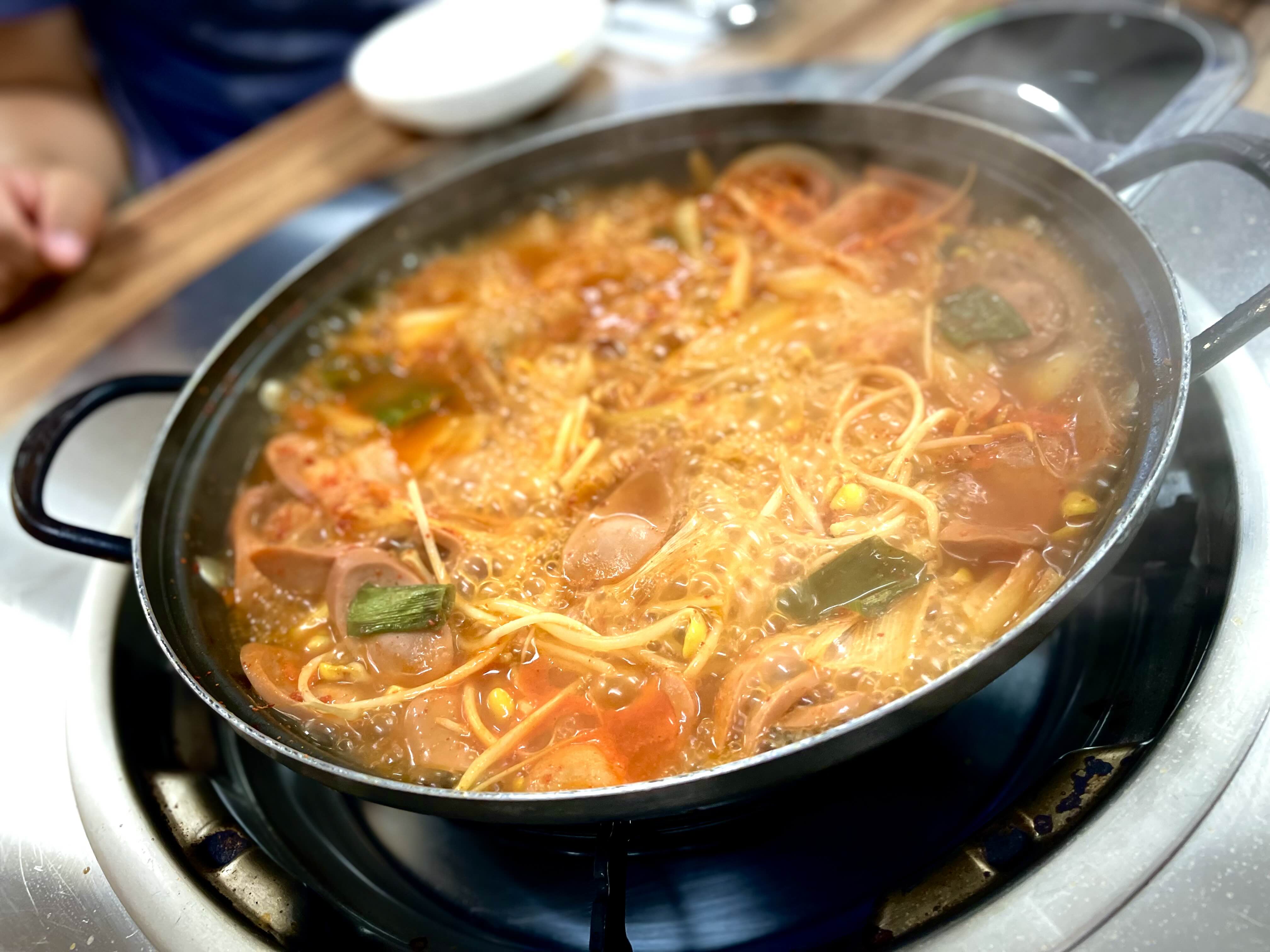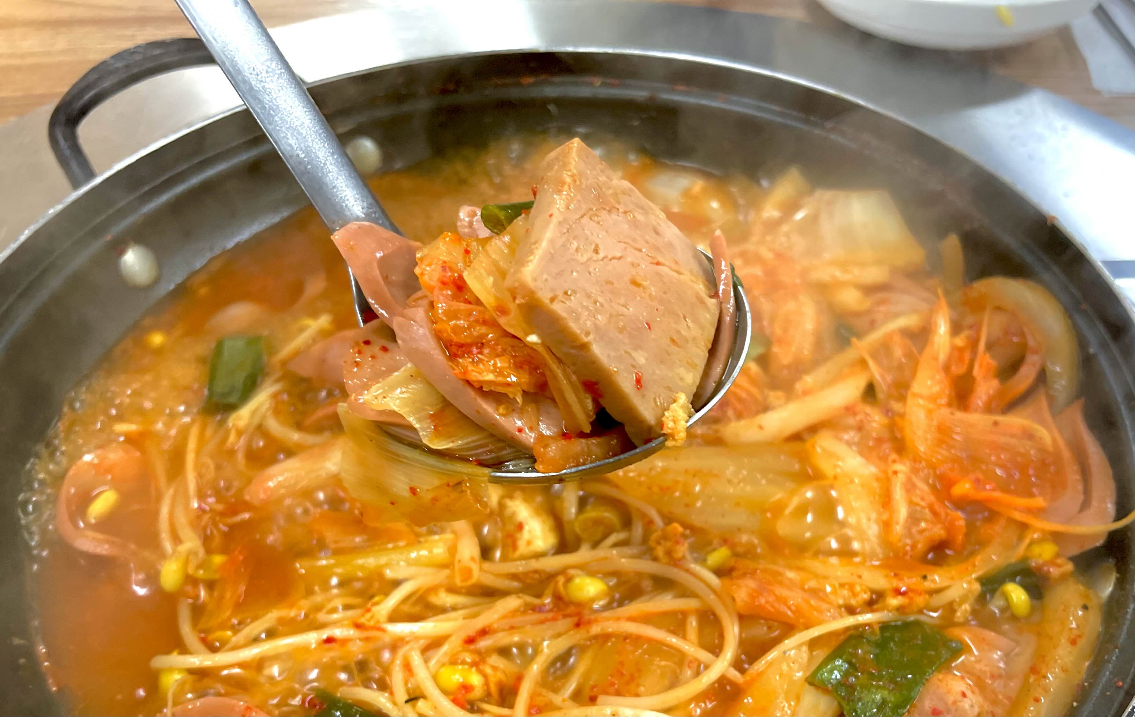 부대찌개에 꼬들한 식감의 라면은 매력적이다.