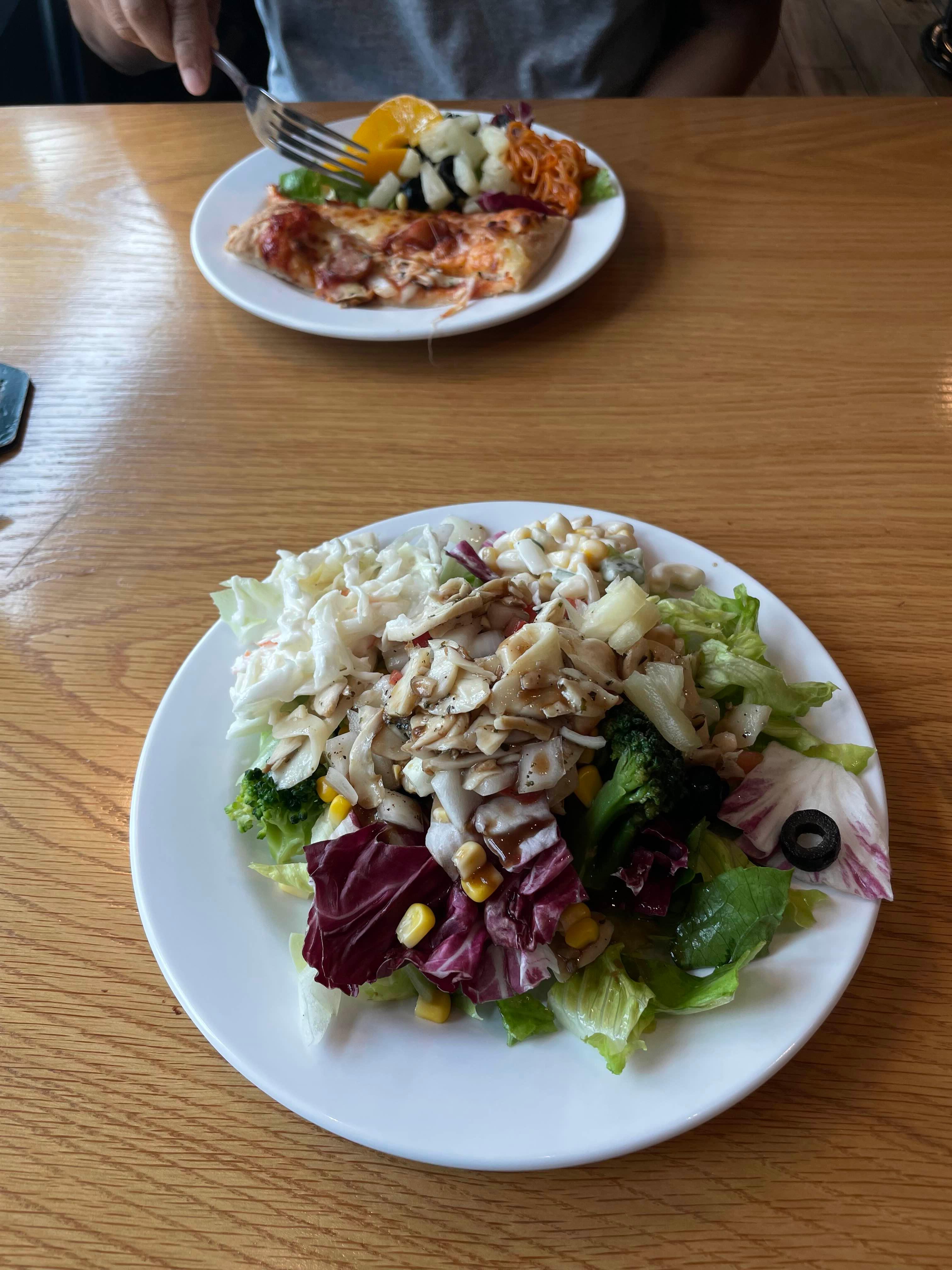 벌써 샐러드를 두 접시나 먹다니. 가성비가 좋다.