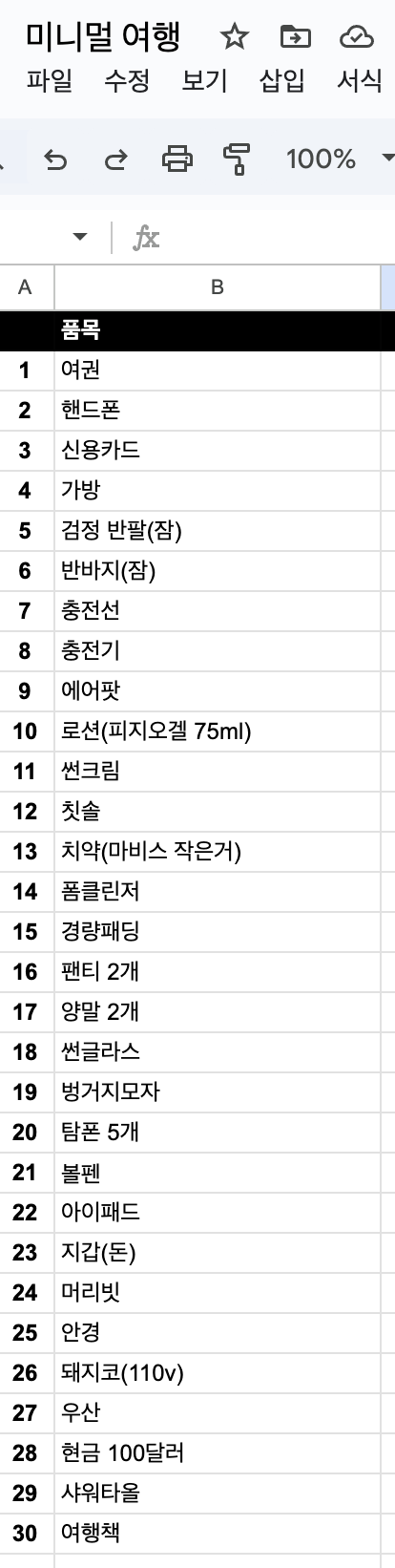 위 리스트는 내가 미니멀 여행을 갈 때 꾸리는 짐 리스트다.