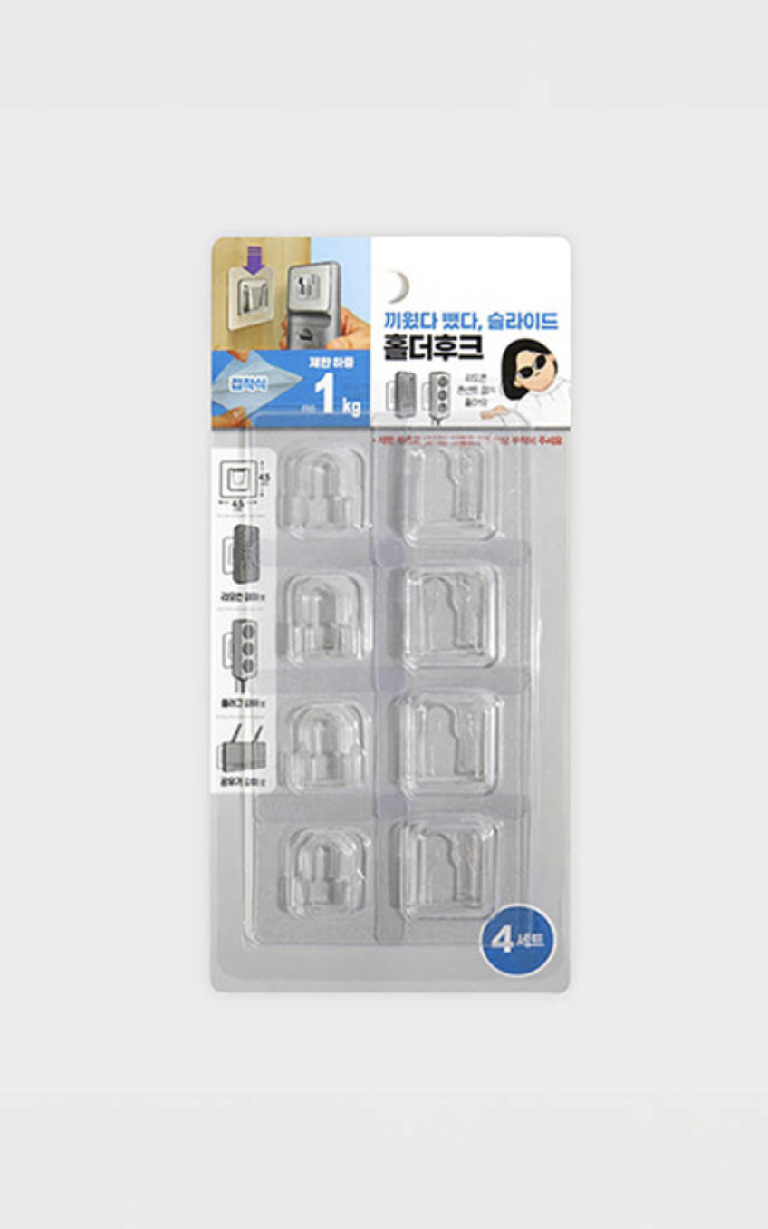 4. 슬라이드 홀더 후크(다용도 접착걸이 4개입) 1,000원