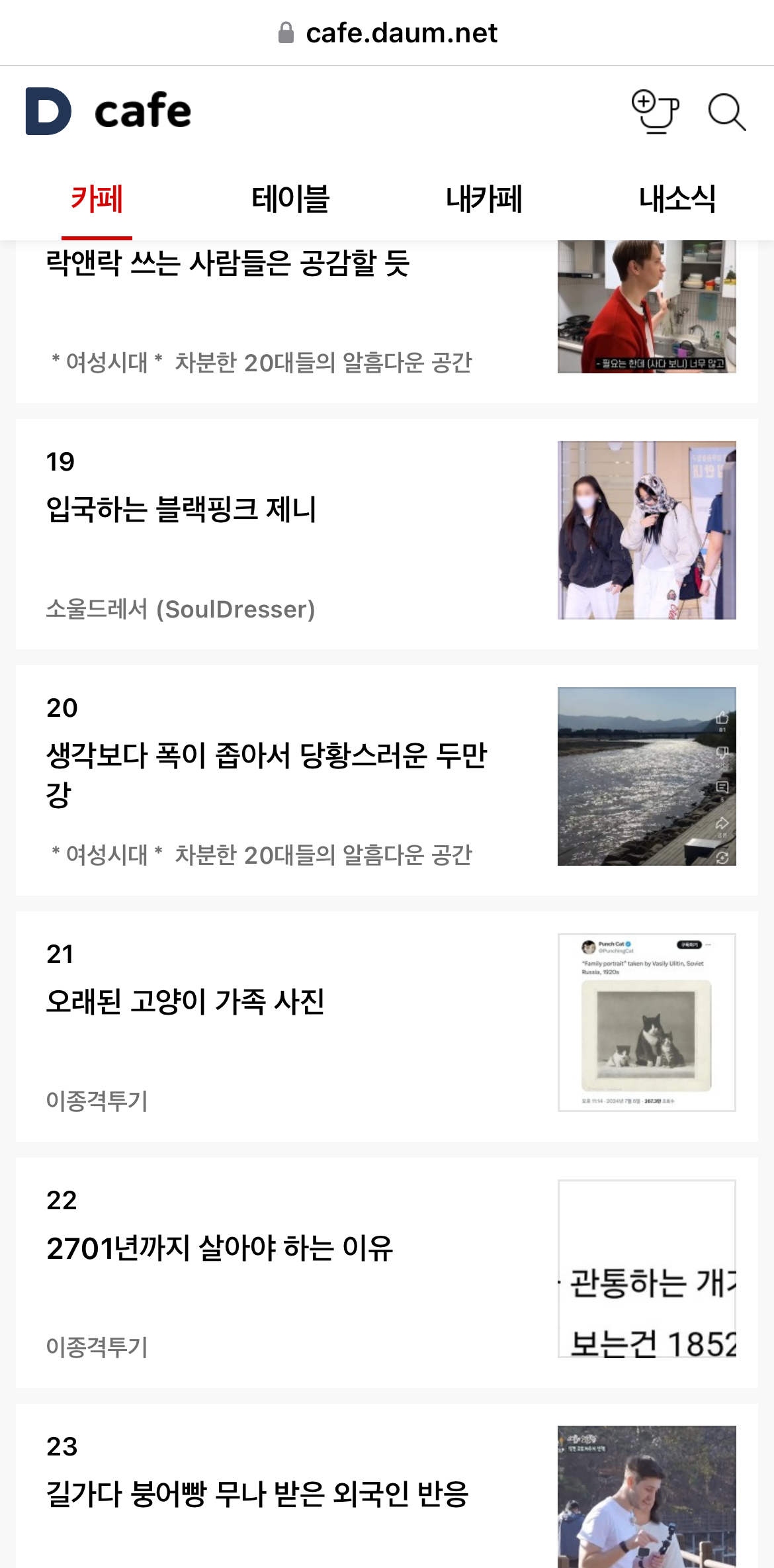 다음 TOP 100은 인기 있는 카페글 100개를 모아두는 데,