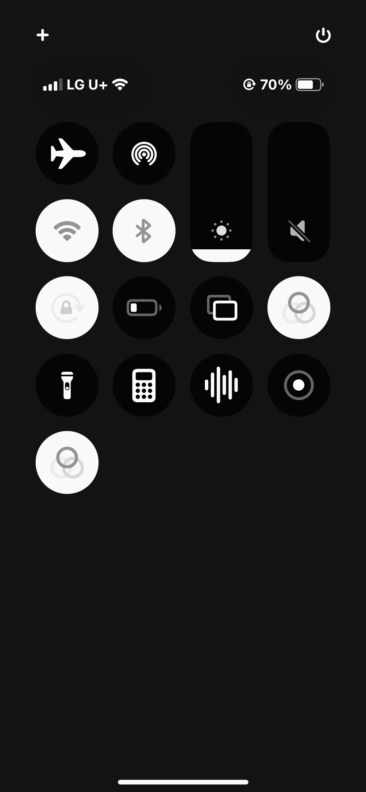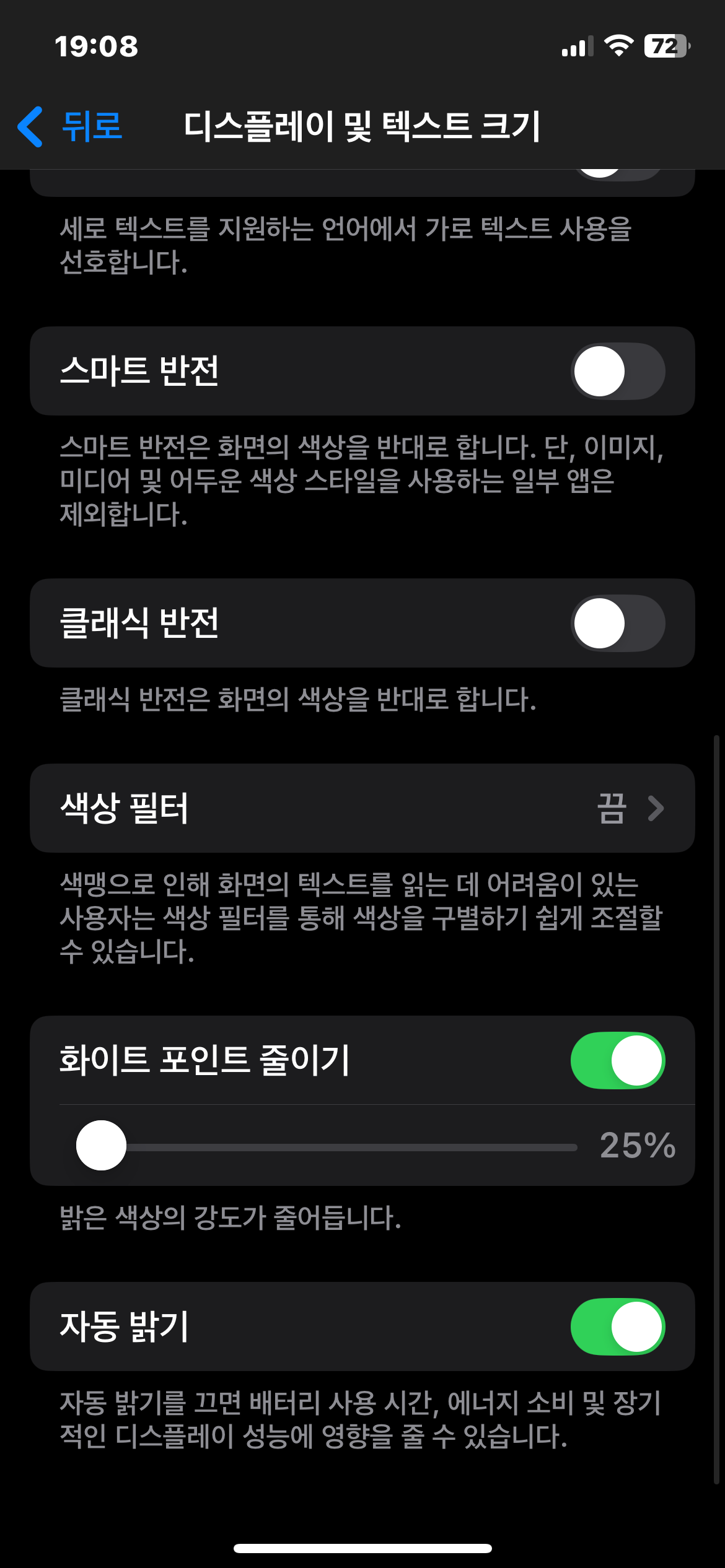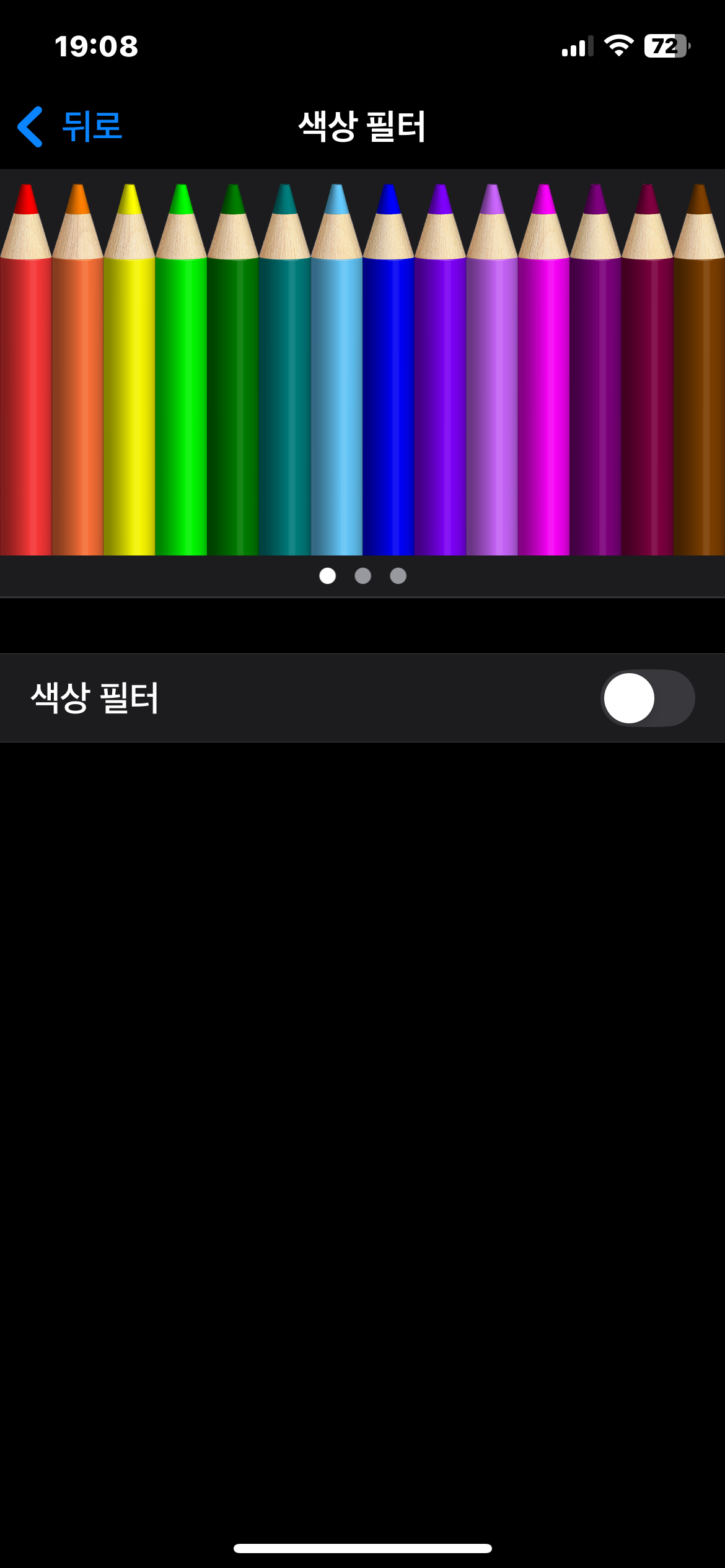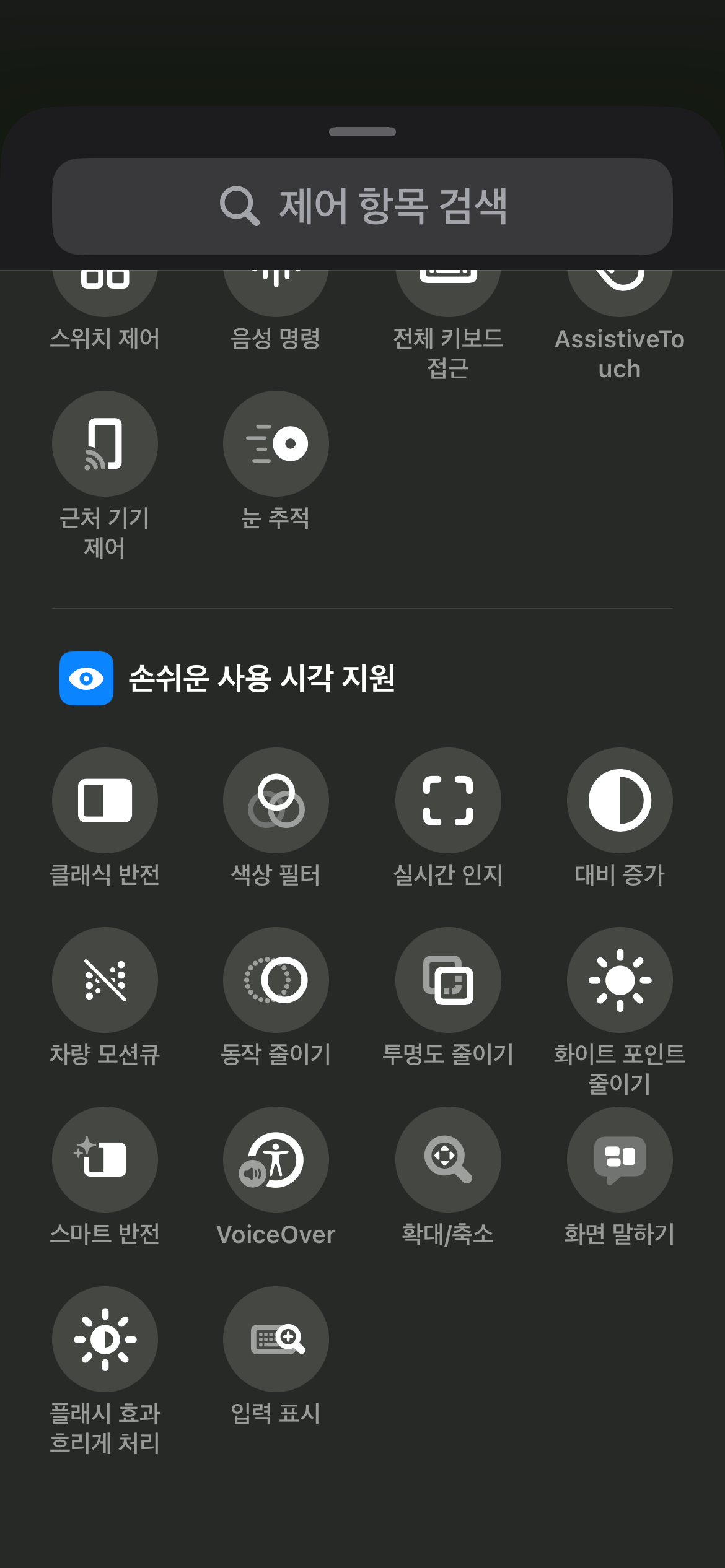 빠르게 제어센터에서 색상필터 메뉴를 켰다 껐다 할 수 있는 방법이 없었을 때는