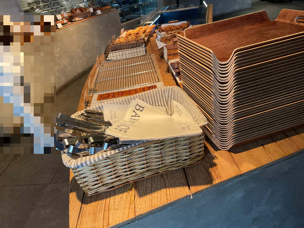 트레이와 집게를 찾지 않아도 자연스럽게 들고 빵을 고르게 된다.
