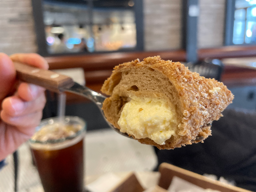 빵 외관의 가루는 크림으로 붙였는데 과하지 않았다.
