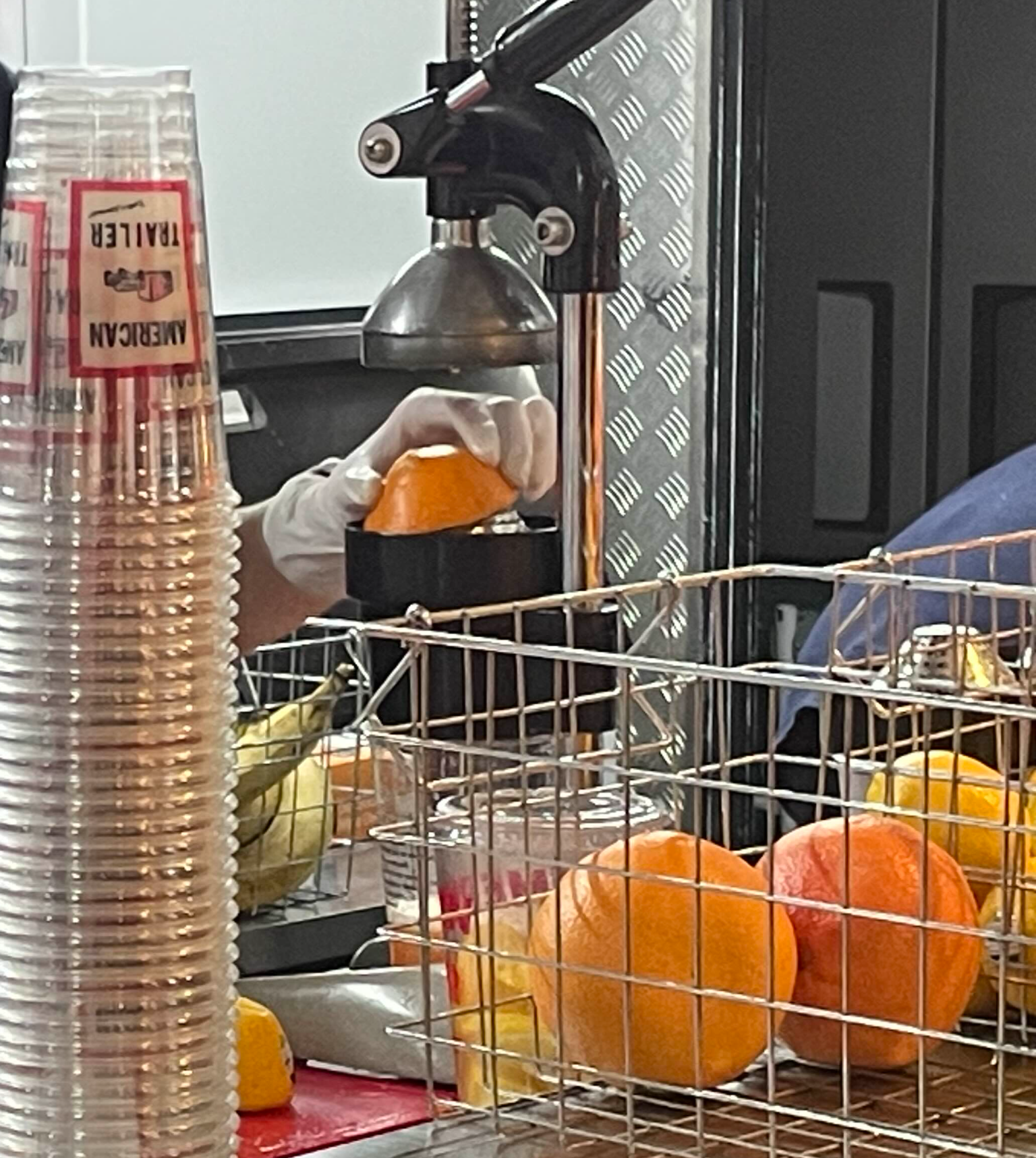 아메리칸 트레일러는 주문을 하면 이렇게 직접 보는 앞에서 착즙을 해준다.