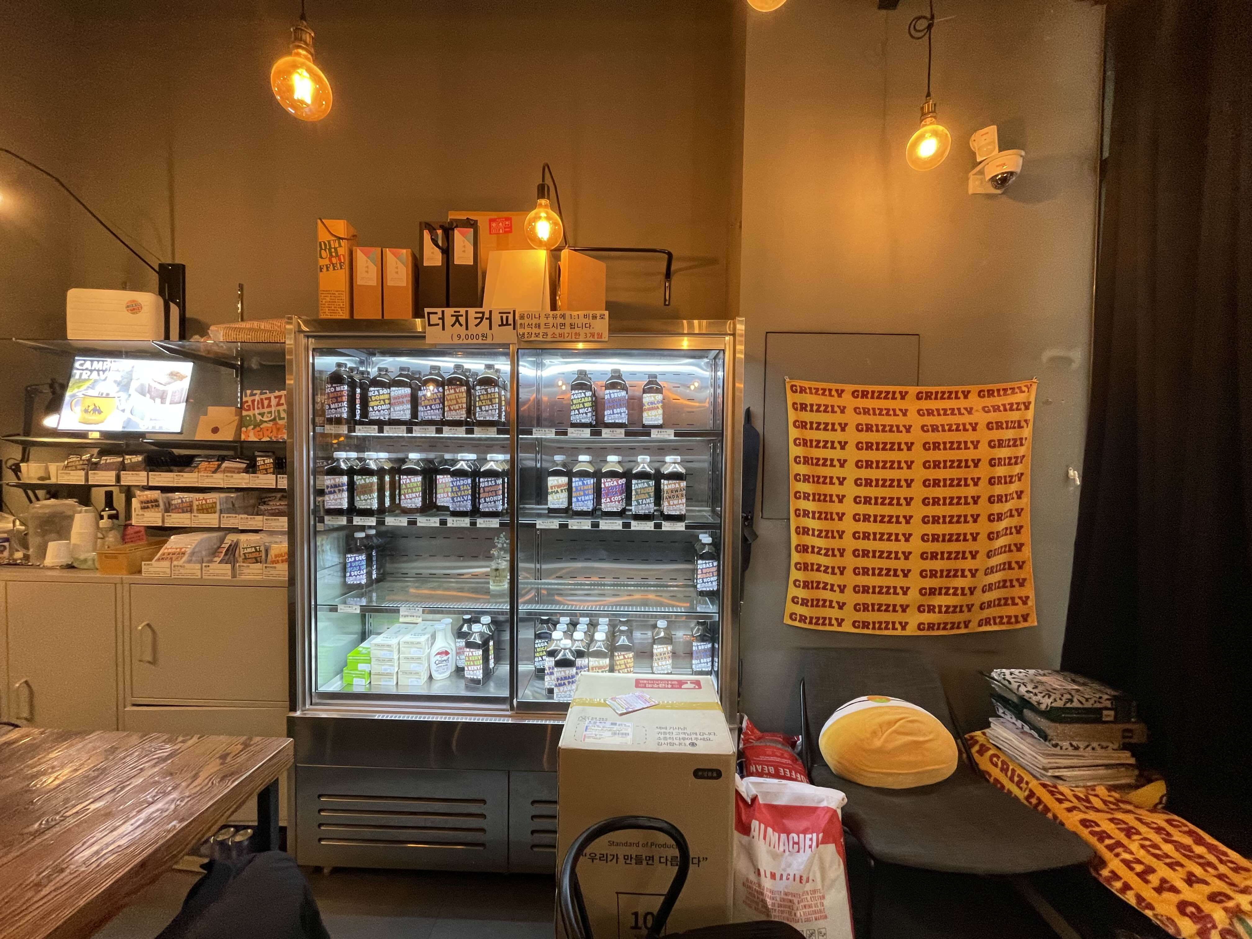 또 눈에 띄는 특징으로는 다양한 원두로 만든 더치커피가 냉장고 진열장에 가득한 풍경이다.
