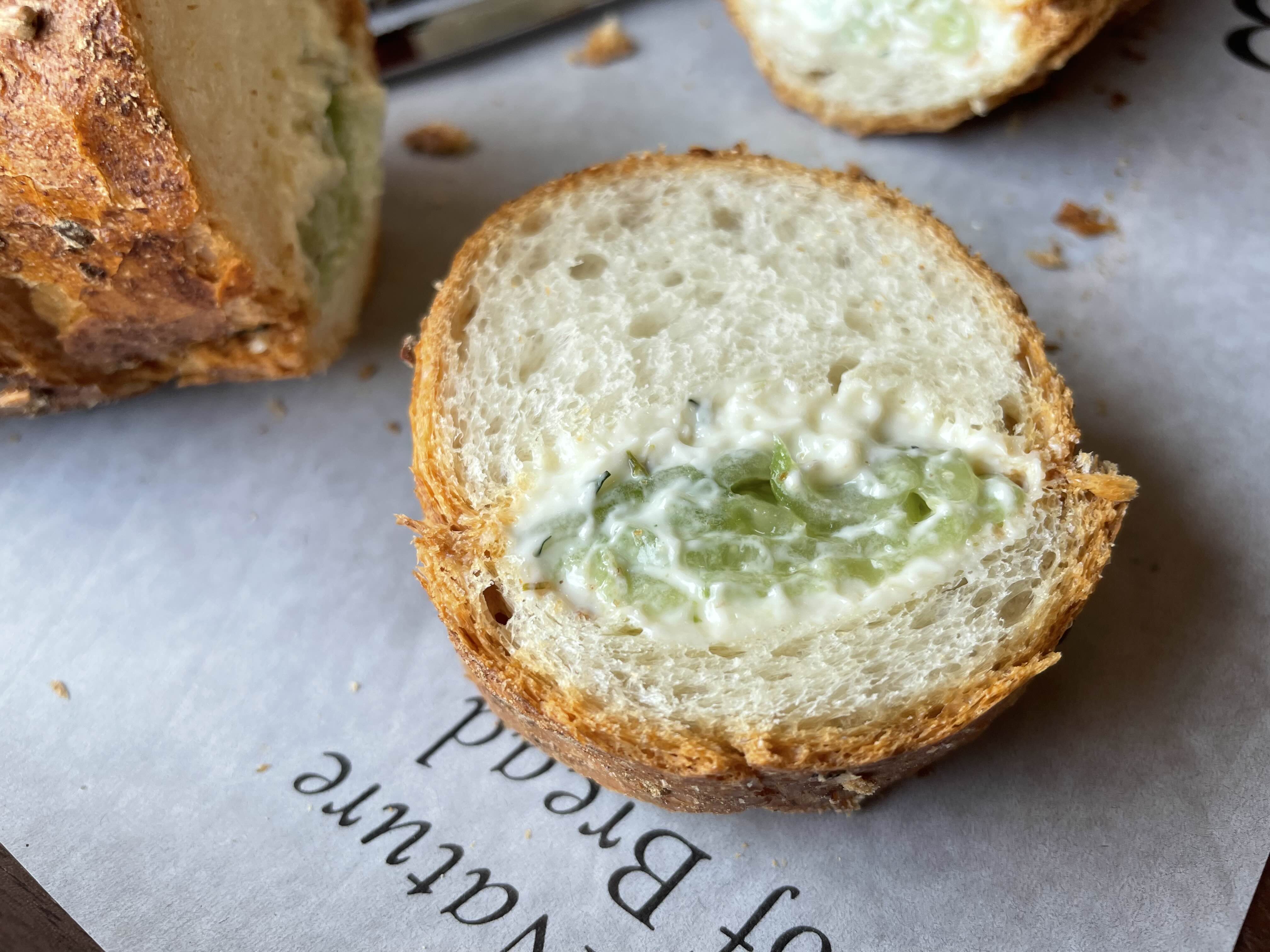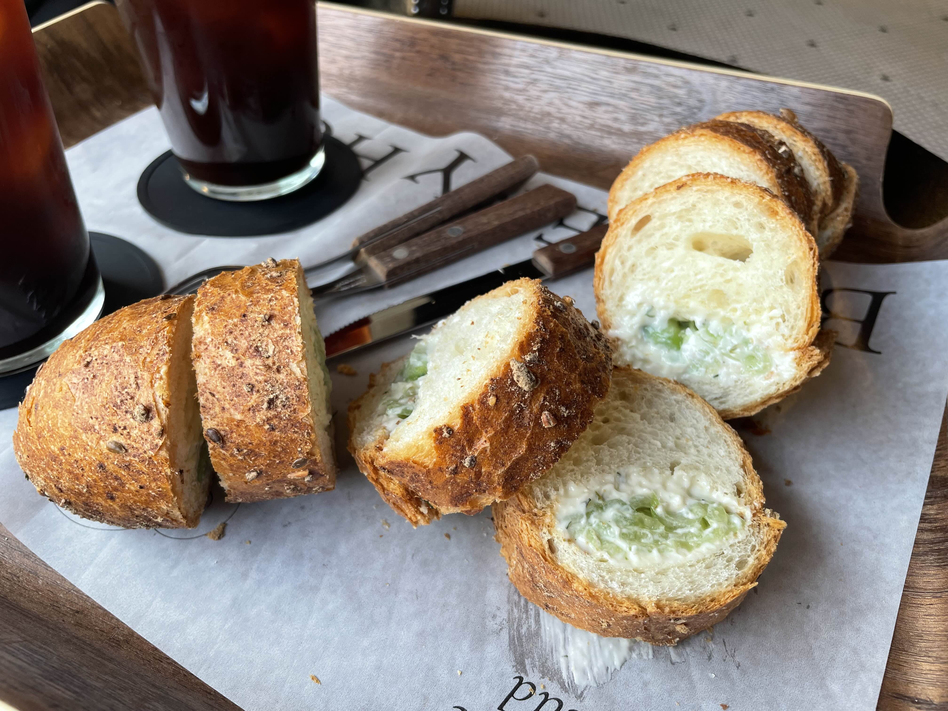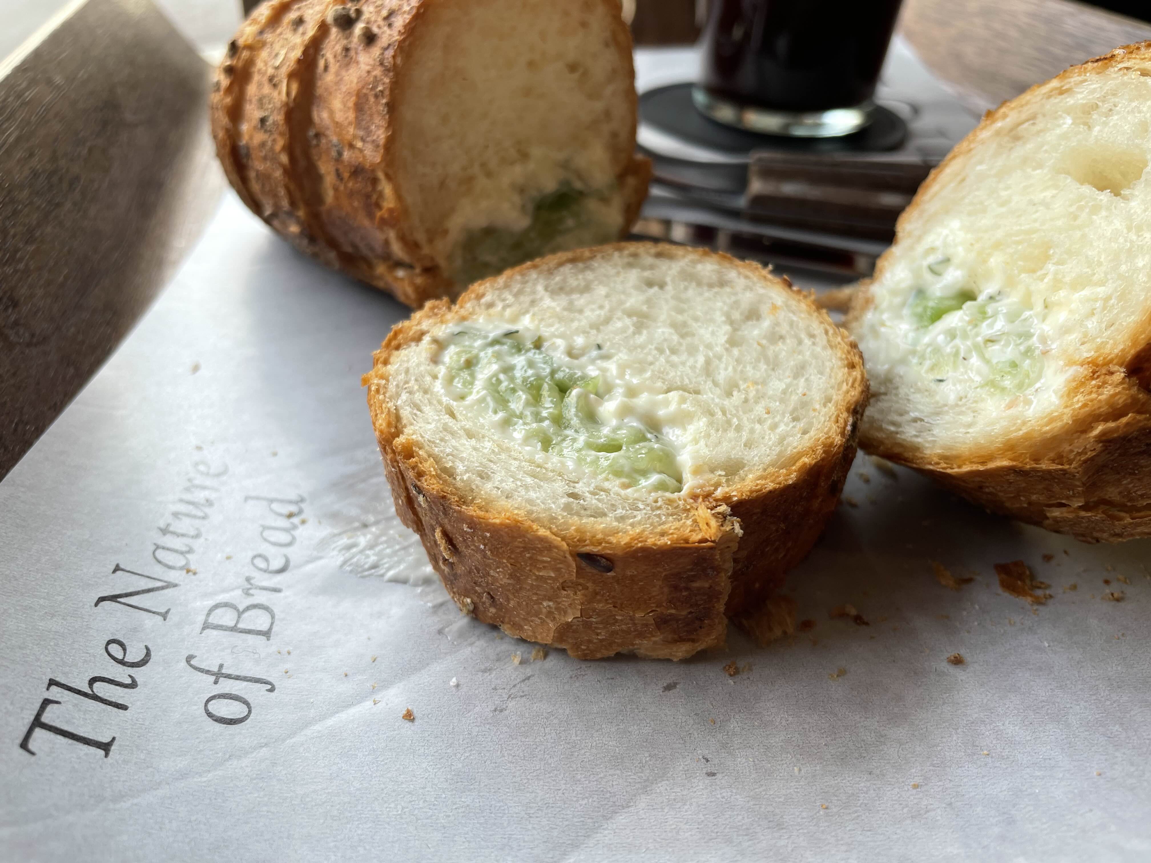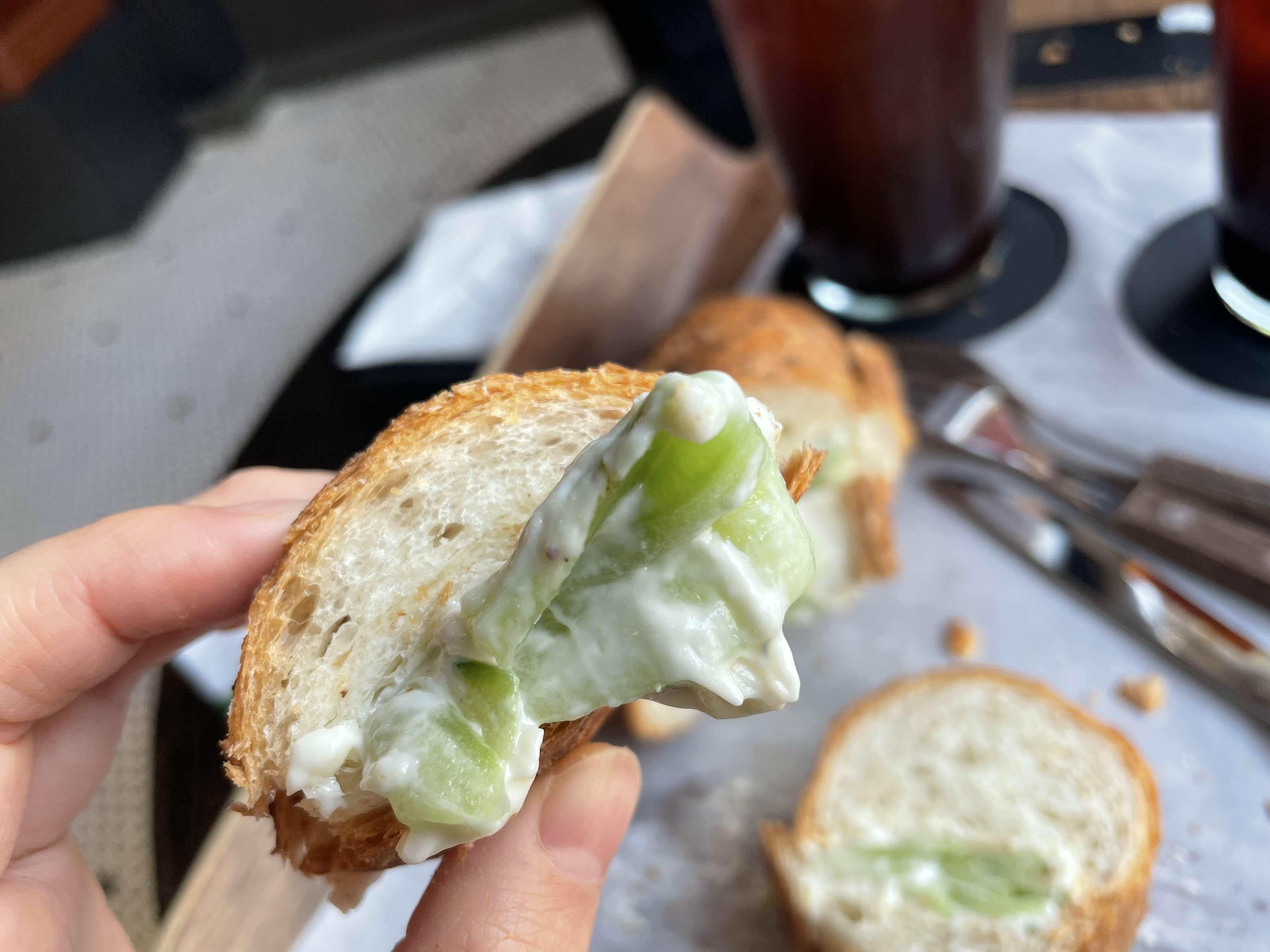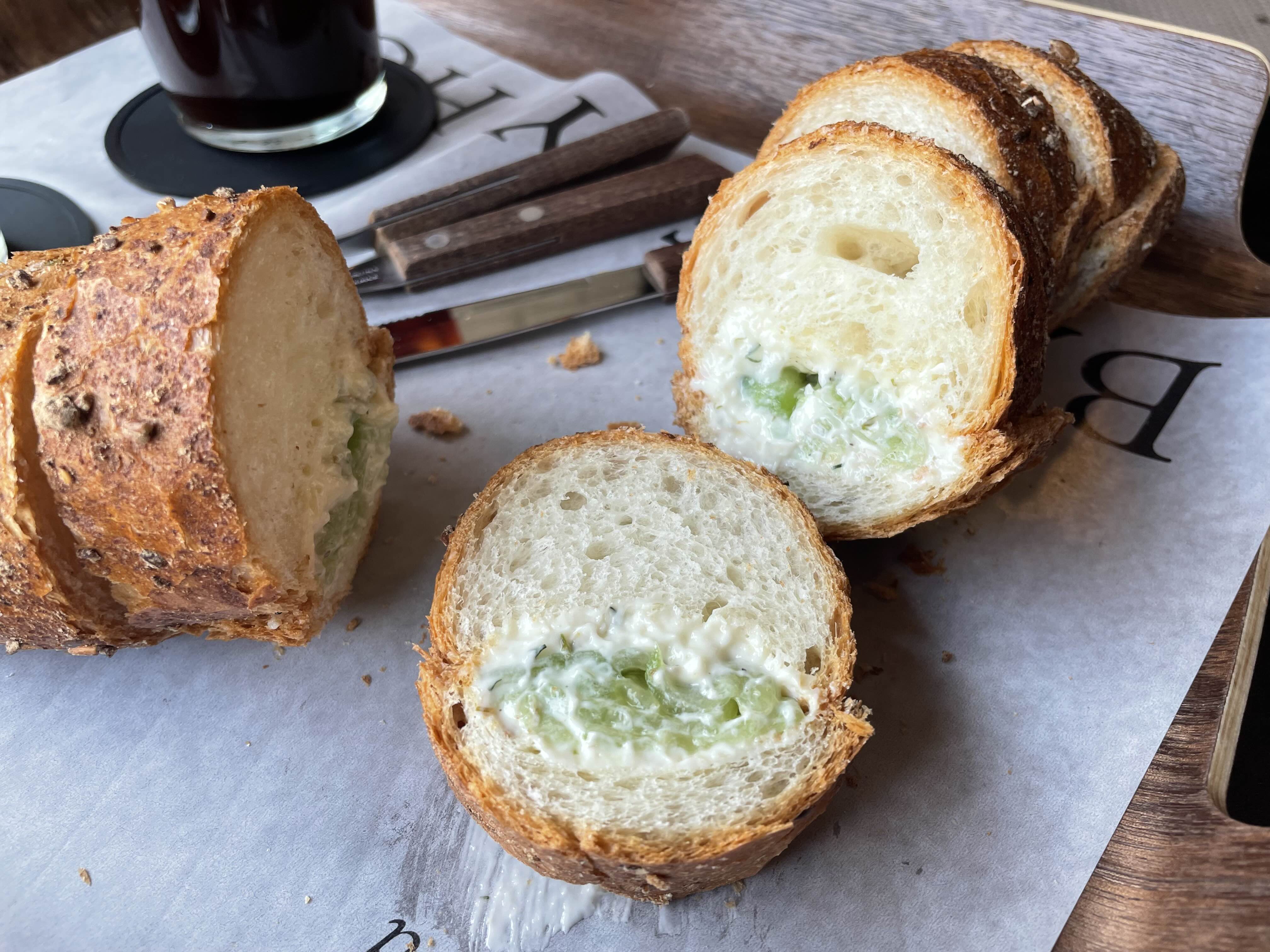 ✔️ 들어가는 속이 오이 1개로 단순한 음식이다. 그래서 더 맛있다. 군더더기 없는 빵이다.