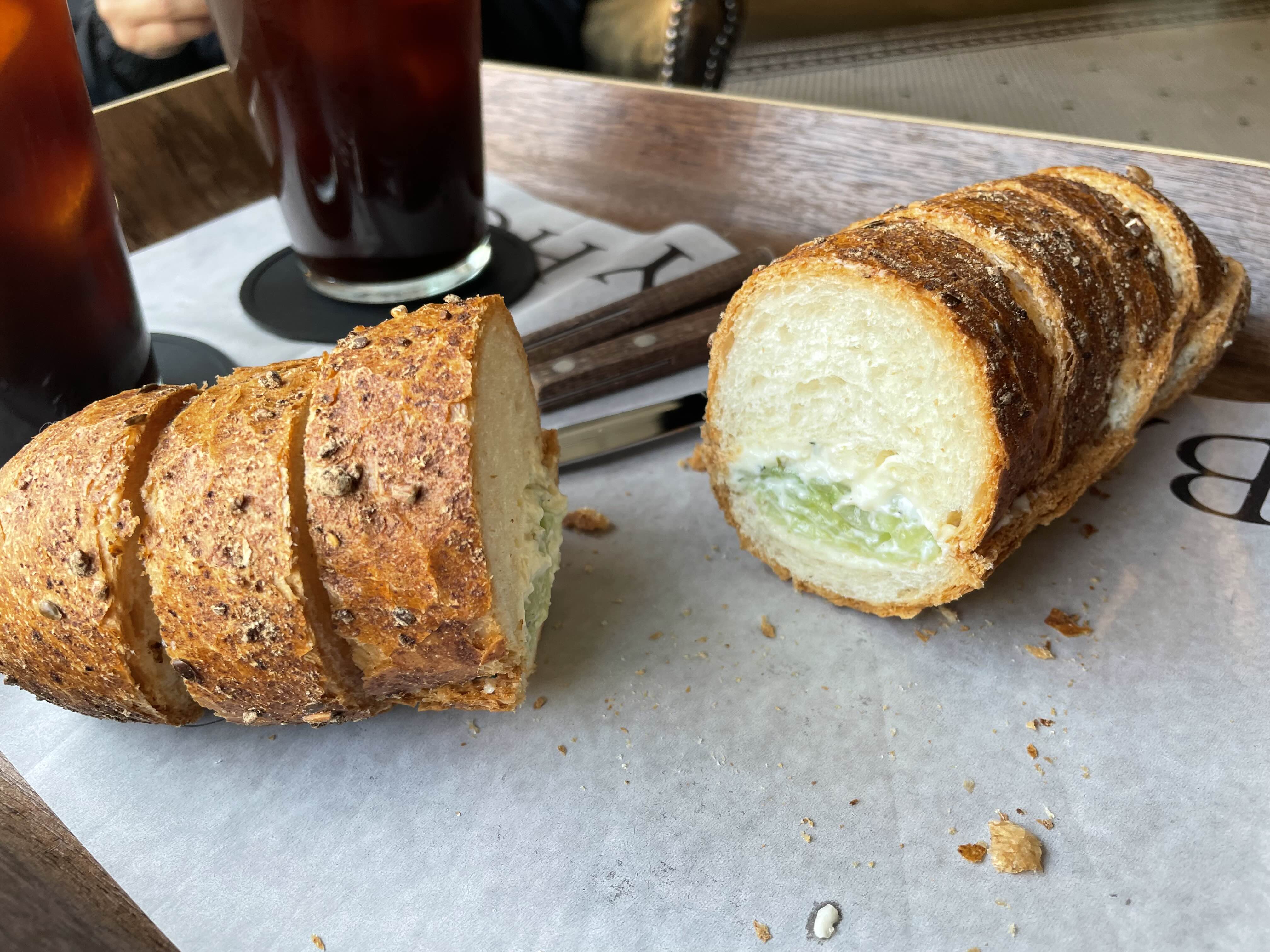 ✔️ 딱 내 양만큼 오이바게트 1/2개와 아메리카노 1잔을 시켜 먹는 게 좋은 경험이었다.