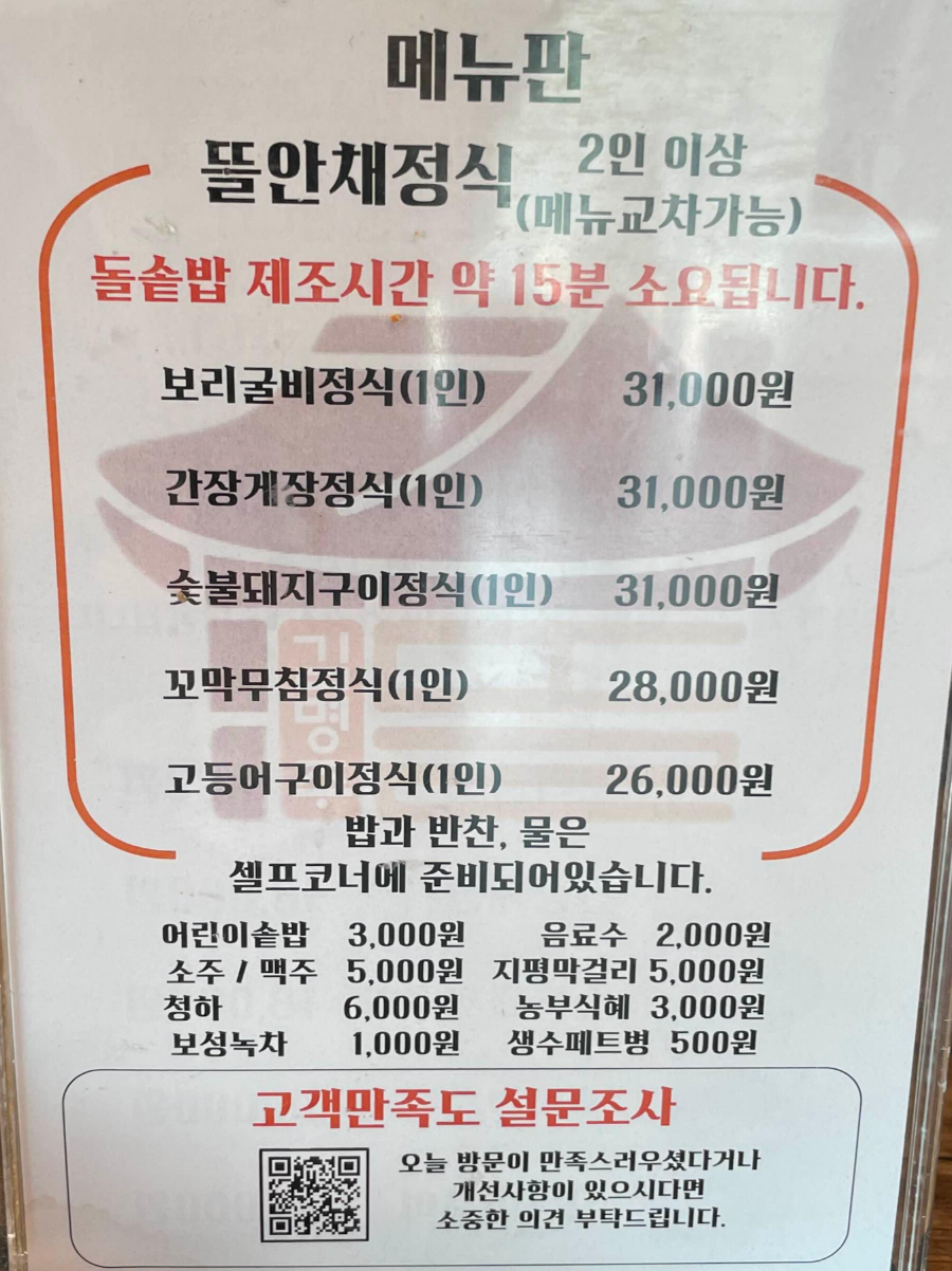 그냥 기본 상차림 가격 + 메인 단품 메뉴 가격이라서 크게 메리트는 없었다.