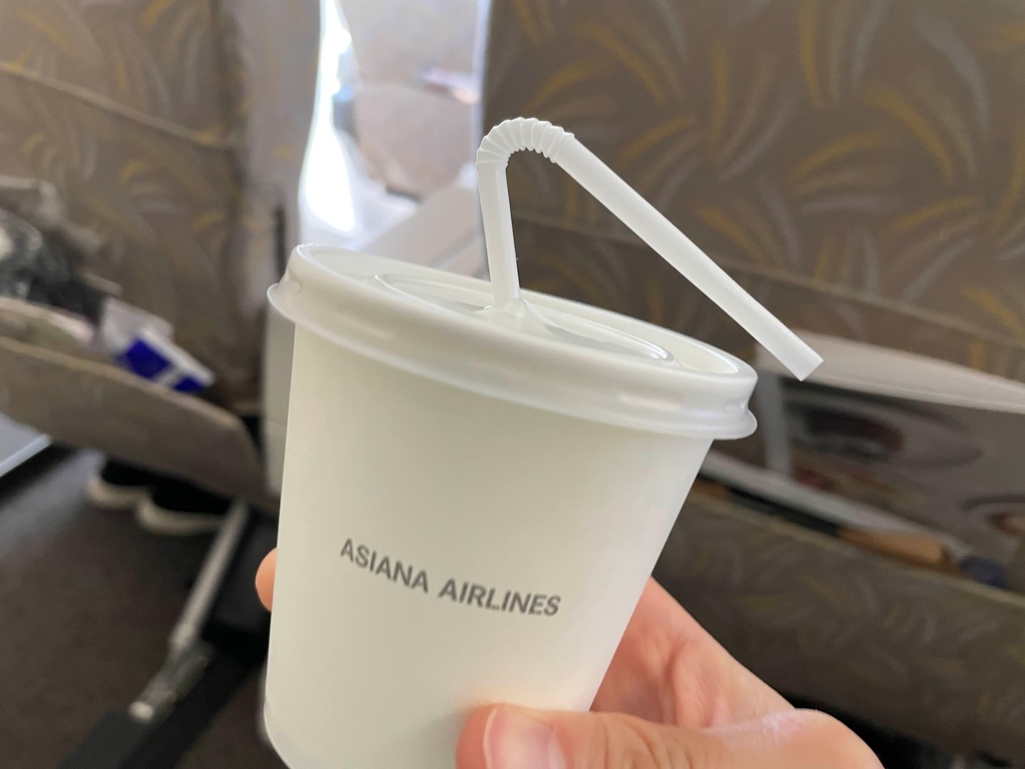 마지막으로 아이에게 먹일 물을 요청하니 아시아나 종이컵에 뚜껑을 닫고 빨대를 꽂아 주셨다.
