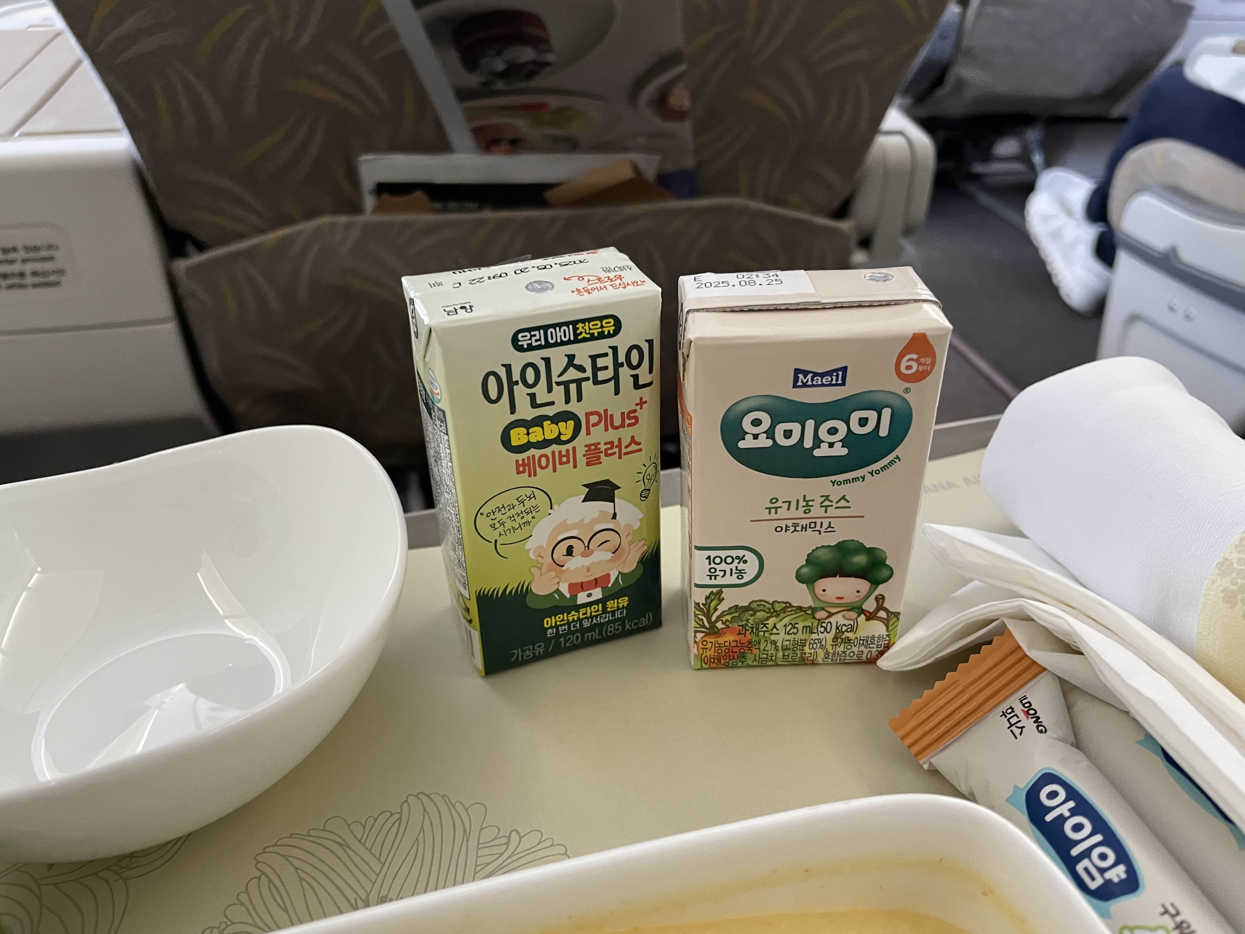 ✔️ 유아식 덕분에 아이와 함께 탄 사람이 기내식을 무사히 먹을 수 있었다.
