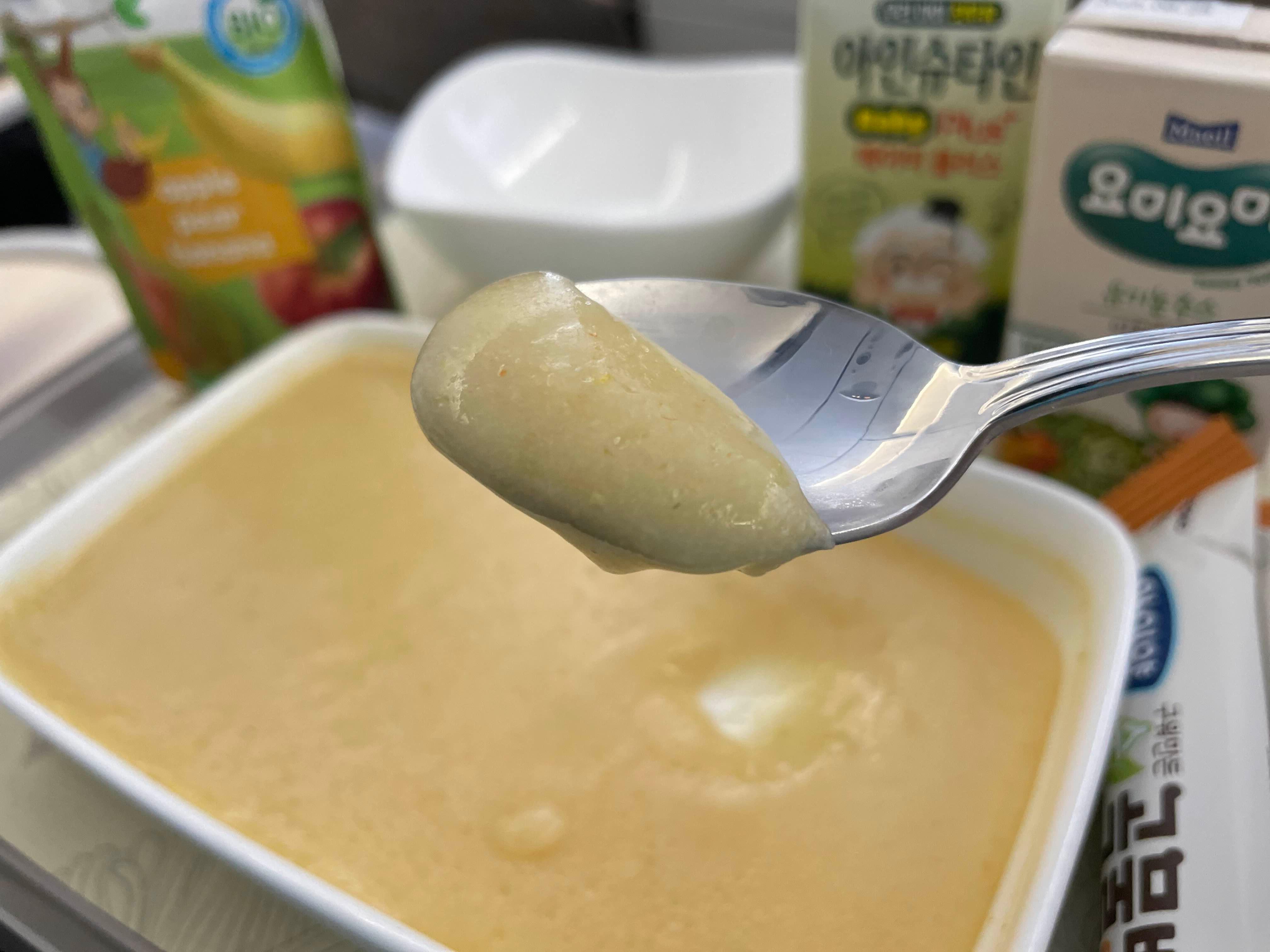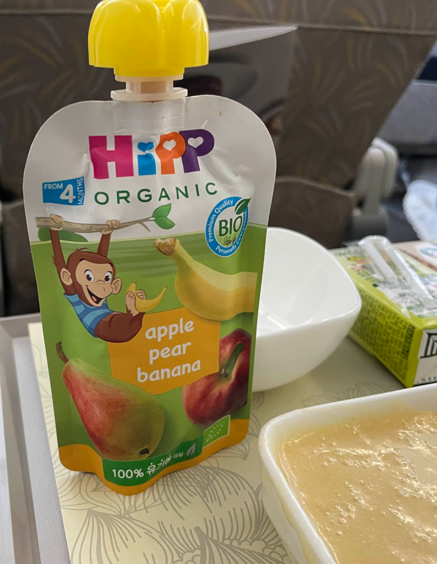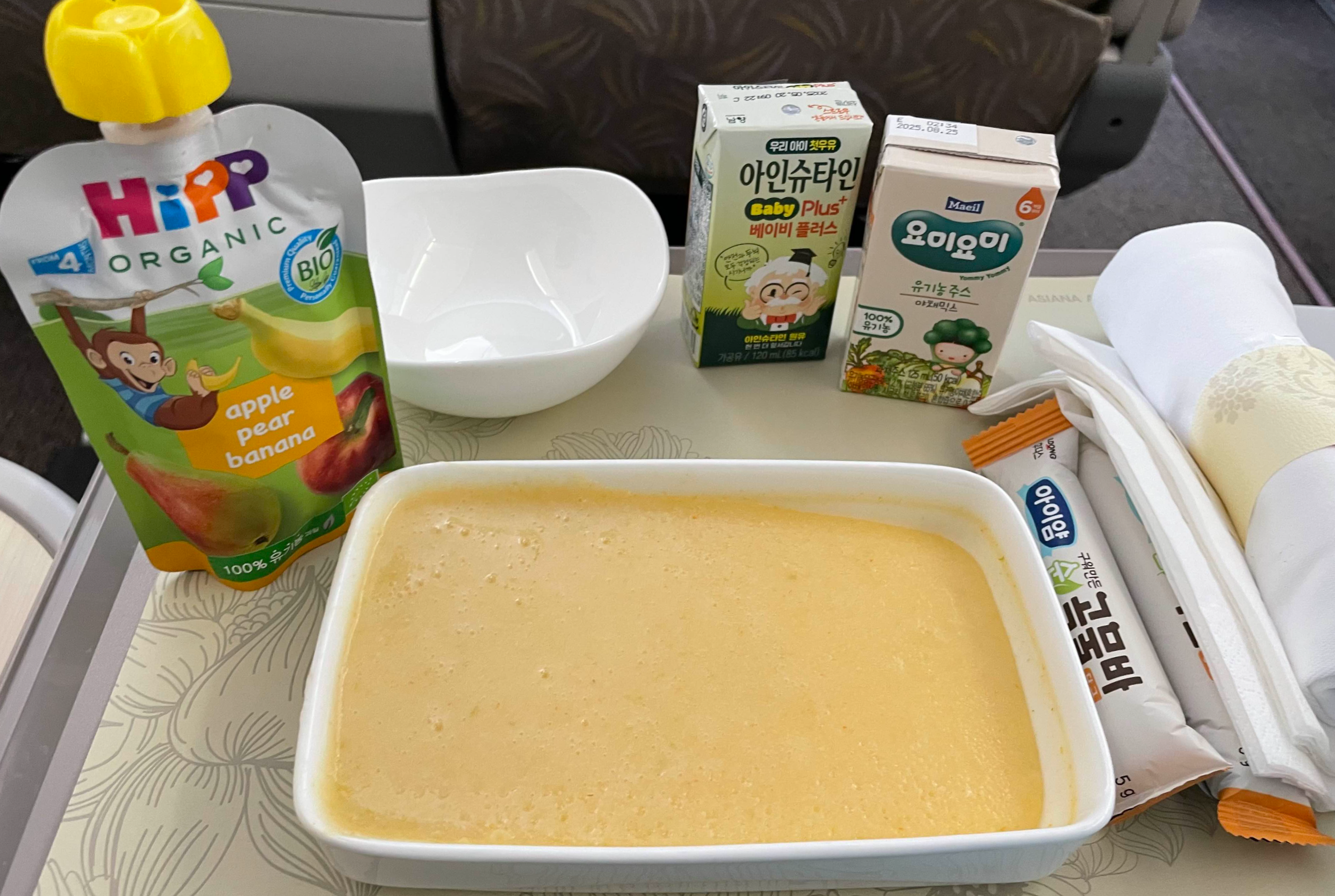 ✔️ 아이가 먹을 수 있는 곱고 부드러운 메뉴들로 기내 유아식이 잘 구성되어 있었다.