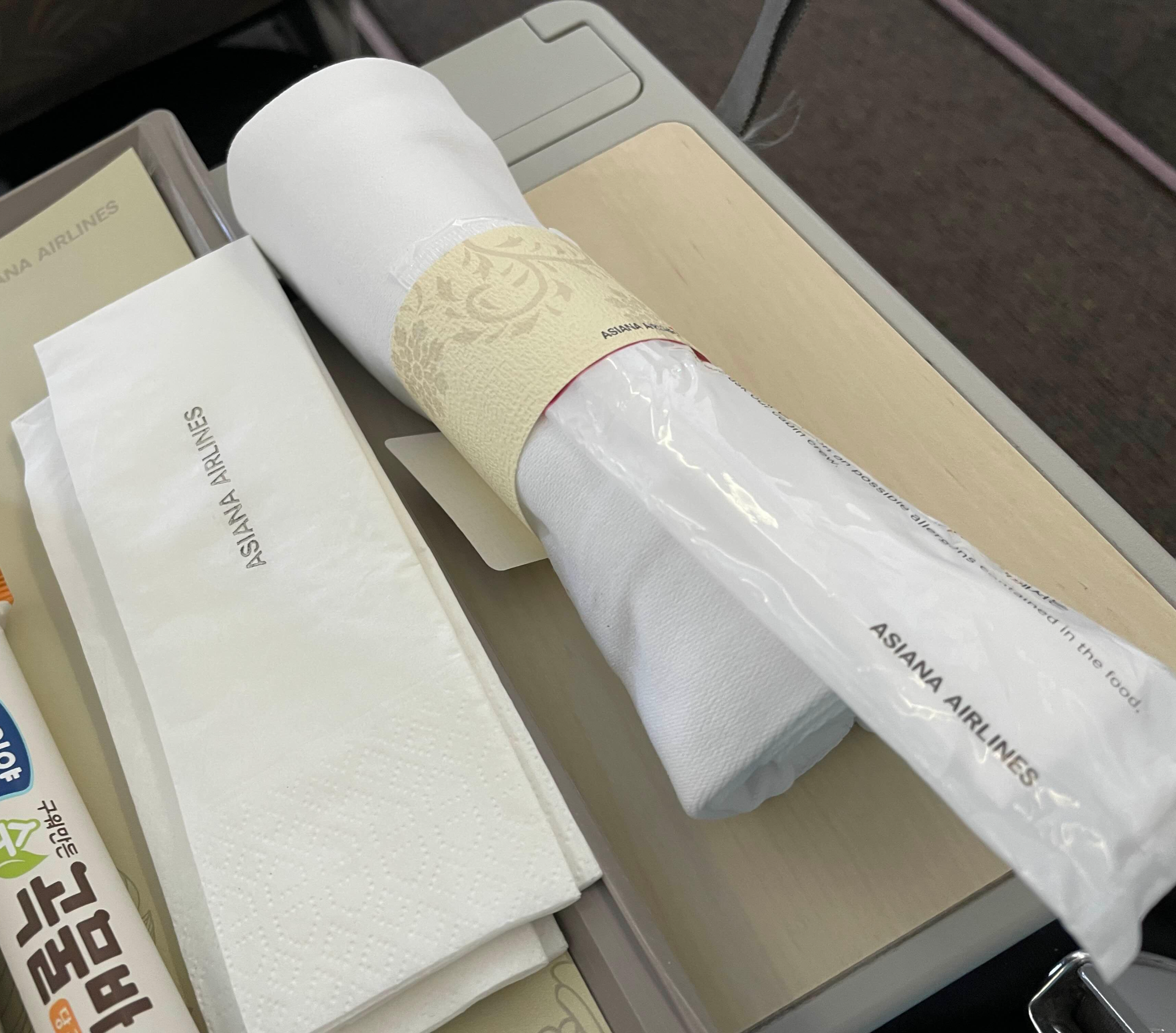 커트러리 세트에는 수저 2개와 일회용 수저 1개, 물티슈, 천 냅킨이 있었다.