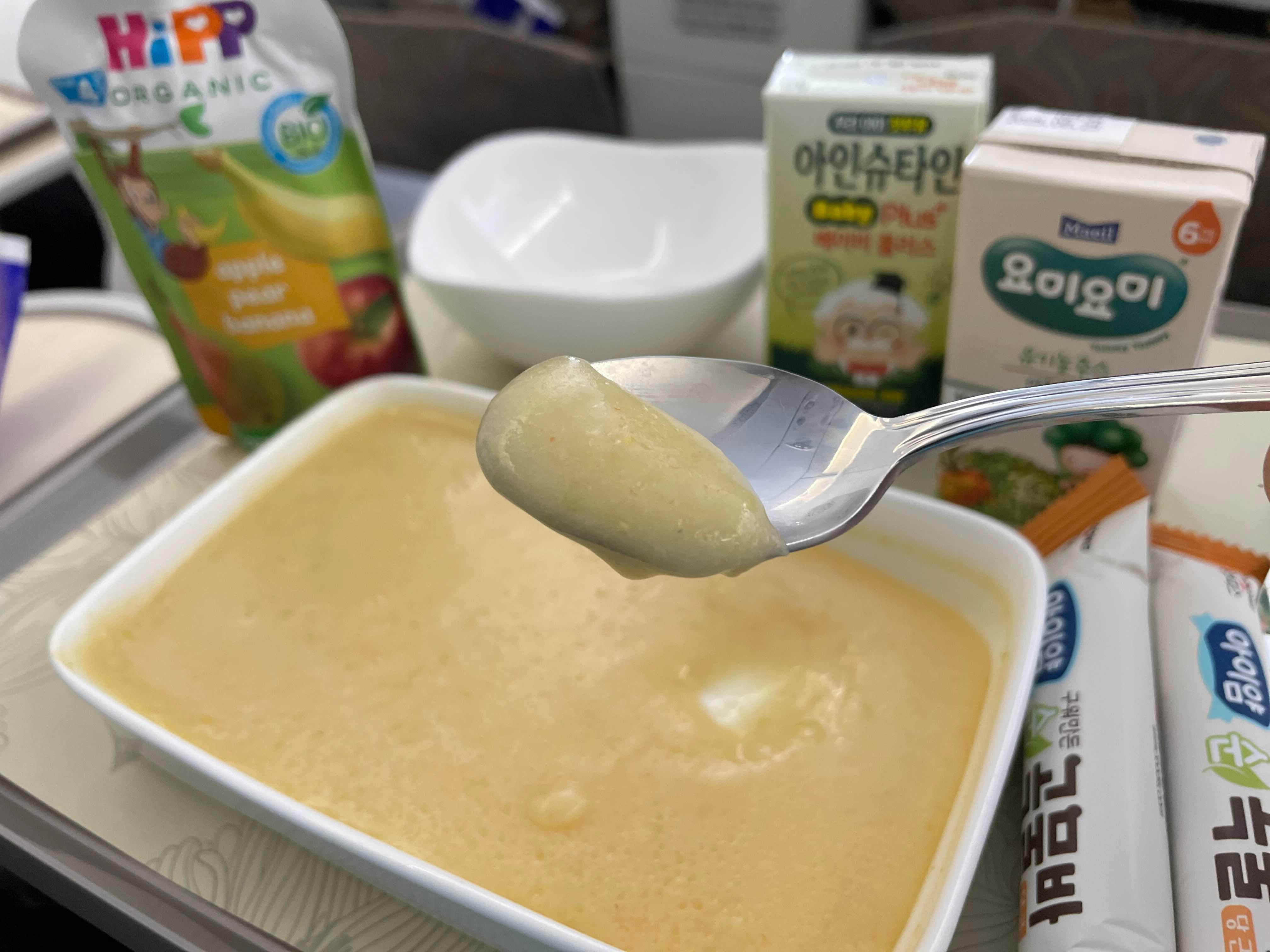 아시아나 비즈니스 클래스에서 처음 시켜본 유아식을 아이가 잘 먹어 좋았다.
