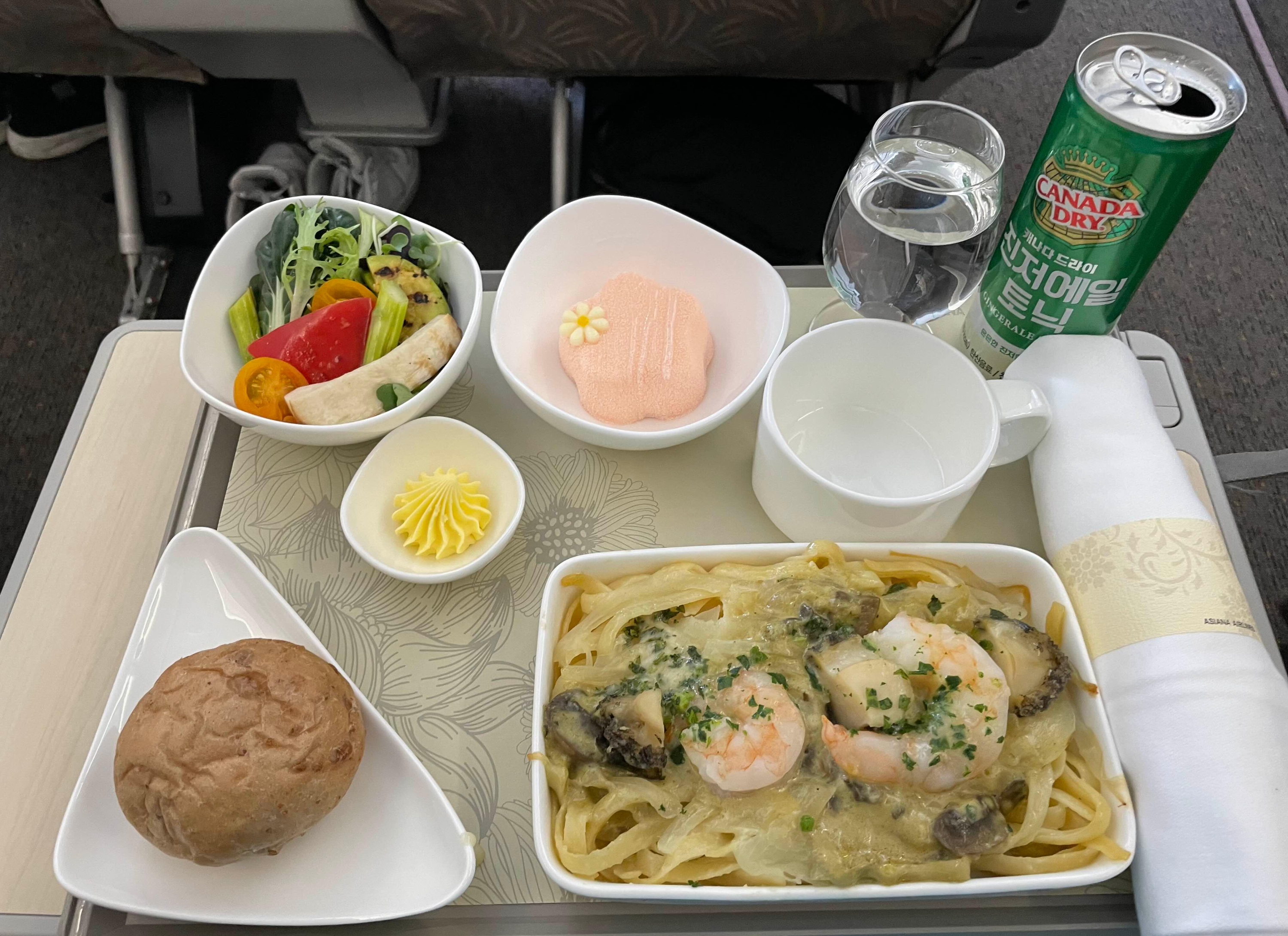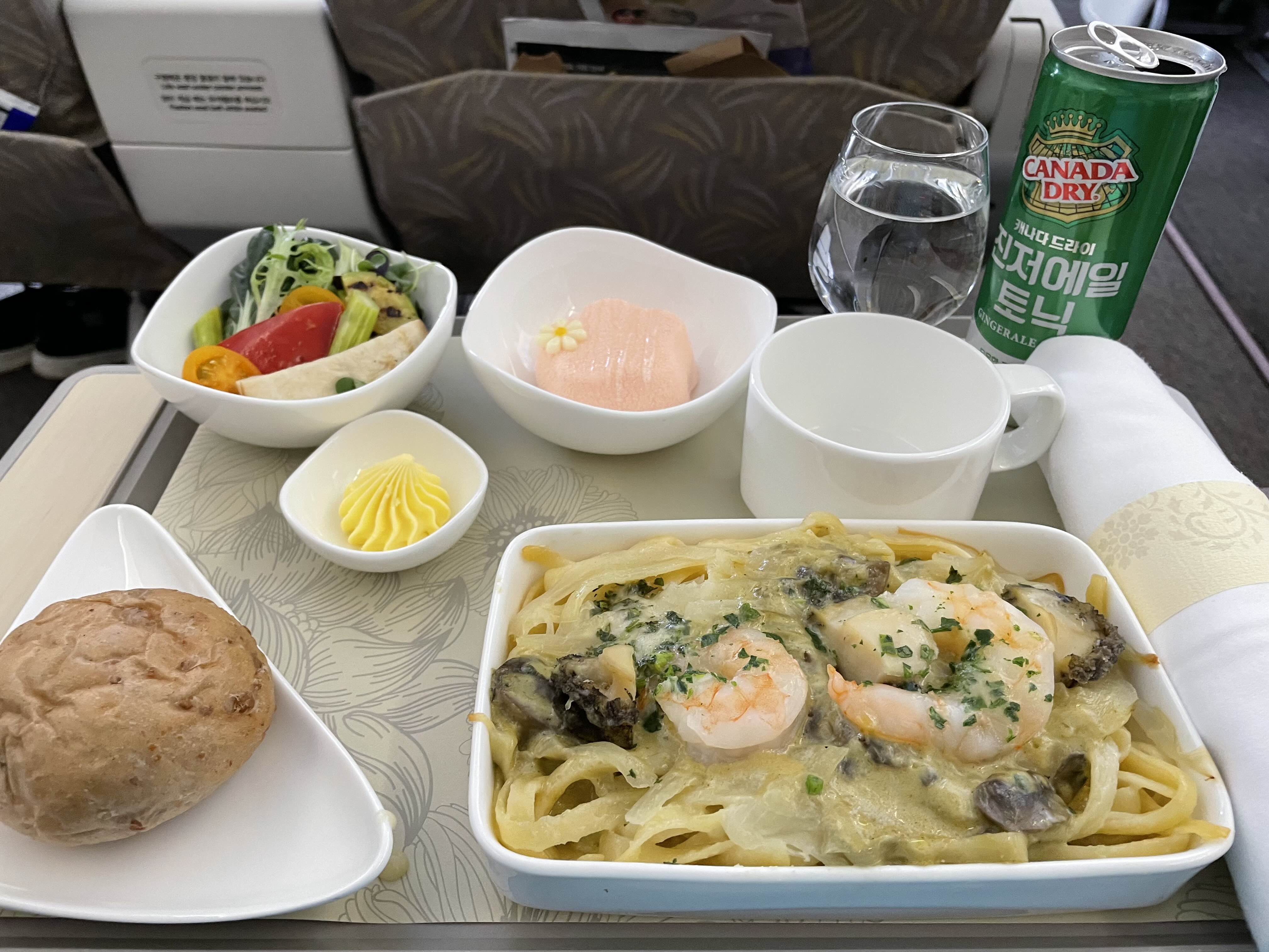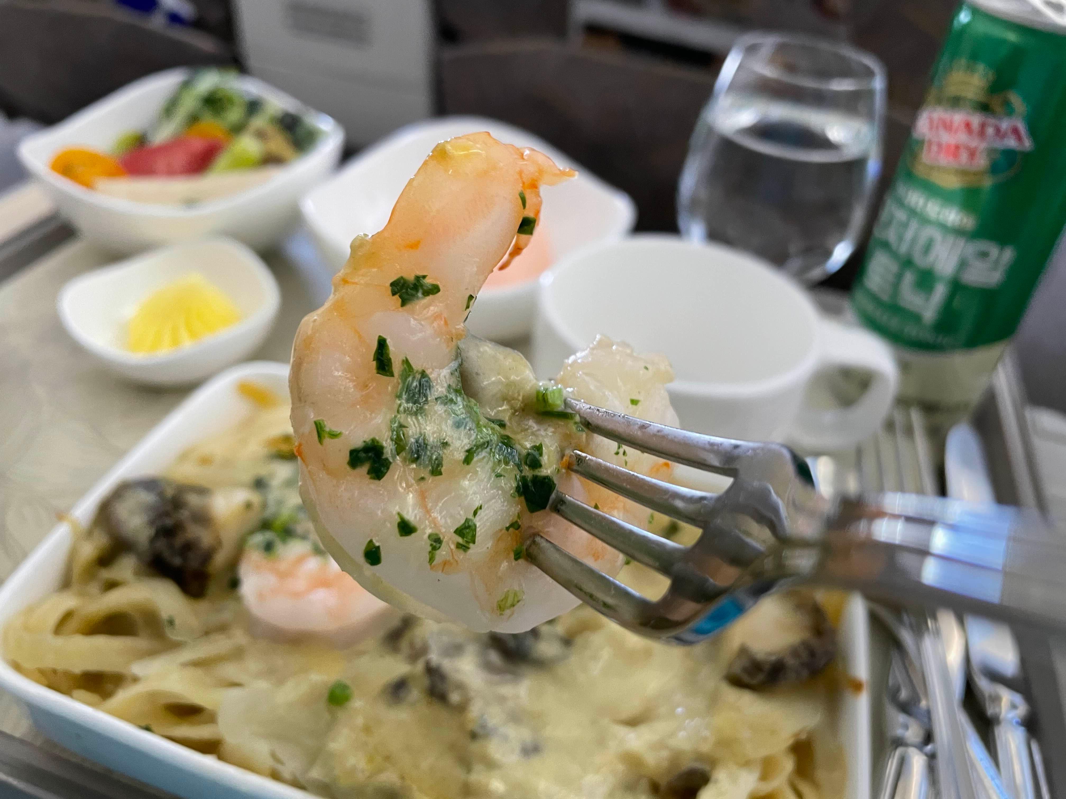 기내식으로 나온 새우 전복 크림 파스타였다.