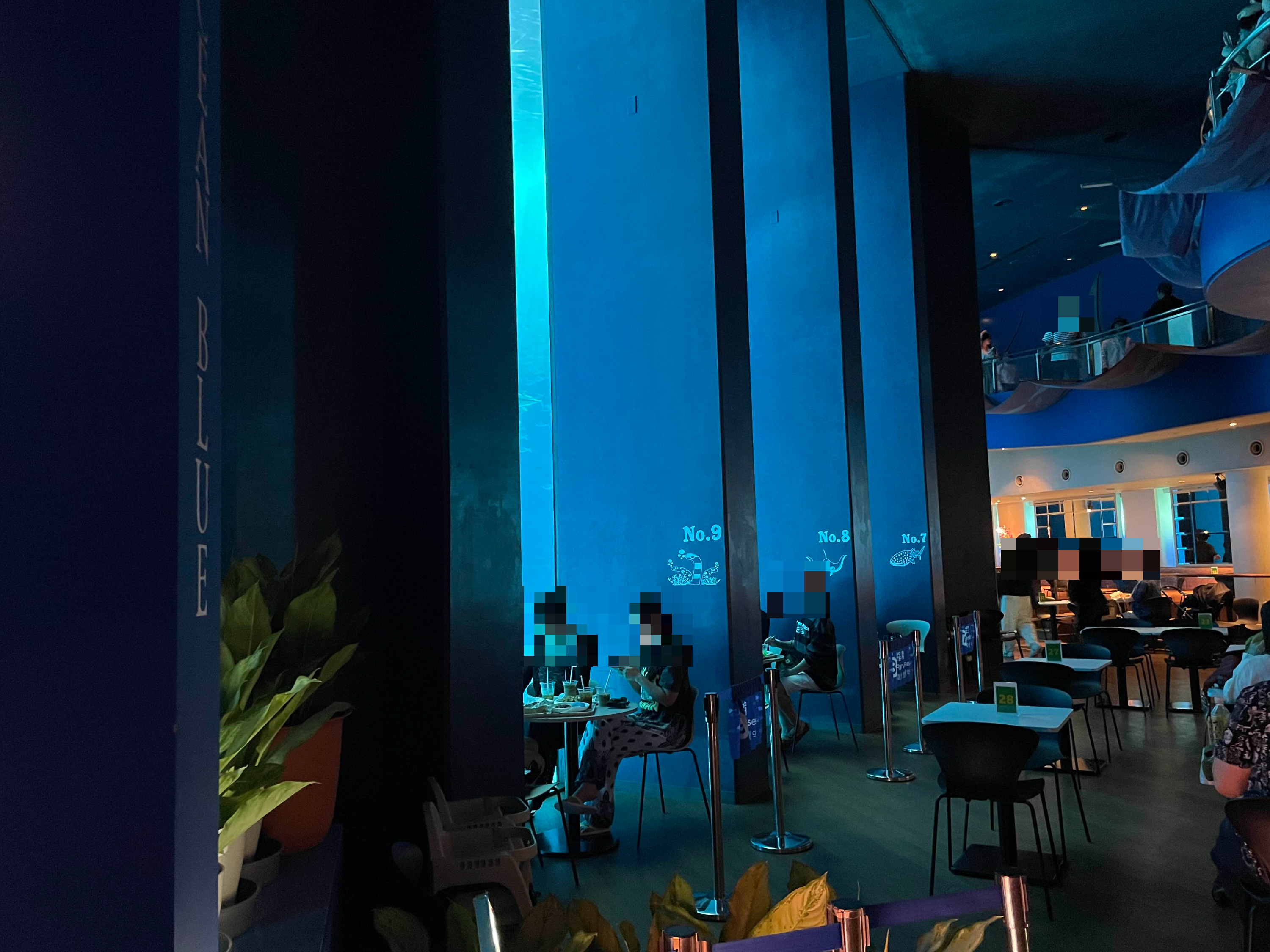 ✔️ 푸른빛이 도는 수족관에서 식사를 하는 것은 마치 바닷속에서 밥 먹는 것 같은 특별한 경험이었다.