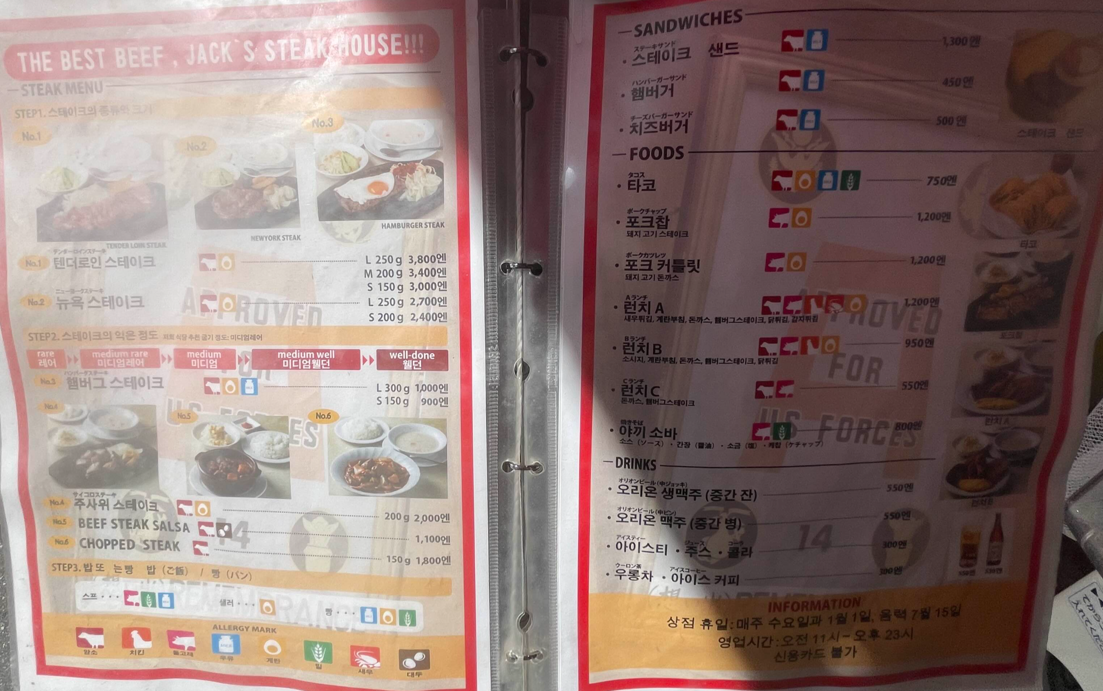 빨갛고 큰 간판으로 'JACK'S STEAK HOUSE OKINAWA가 써져 있어 바로 찾았다.