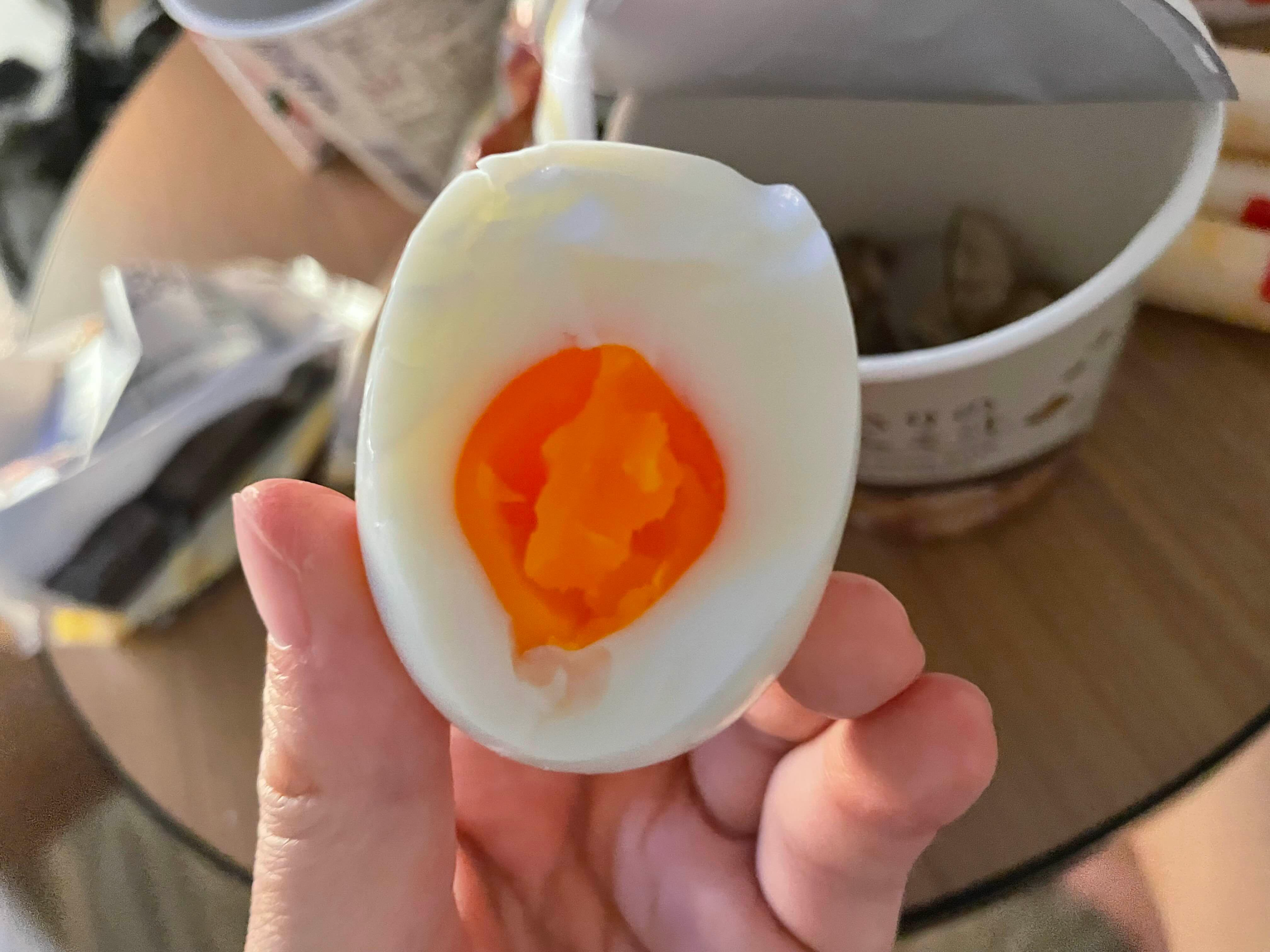 일본 편의점에서 반숙 계란을 샀는데 계란 노른자가 주황색이었다.