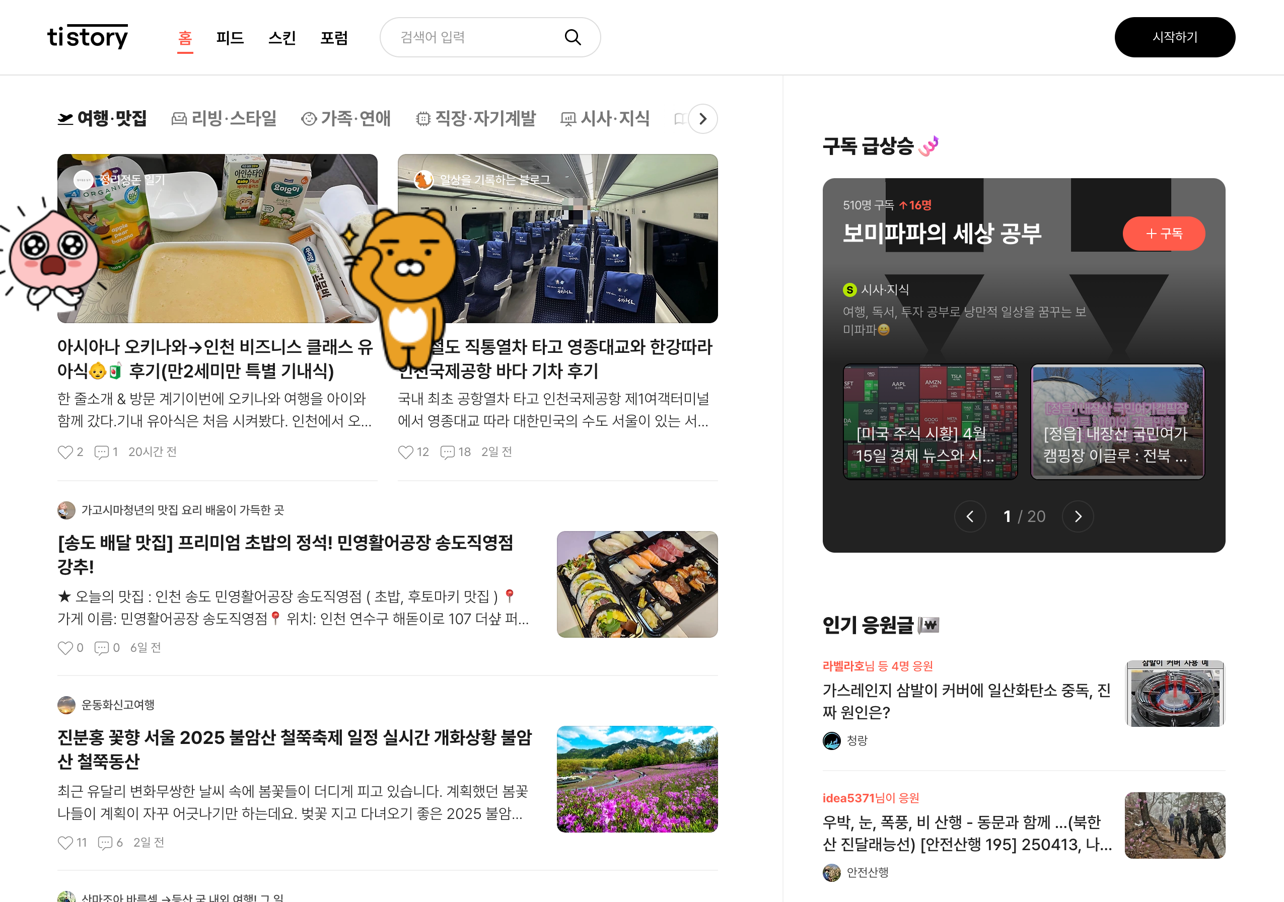 세 번째로 2025년 4월 20일 티스토리 메인에 올랐습니다.